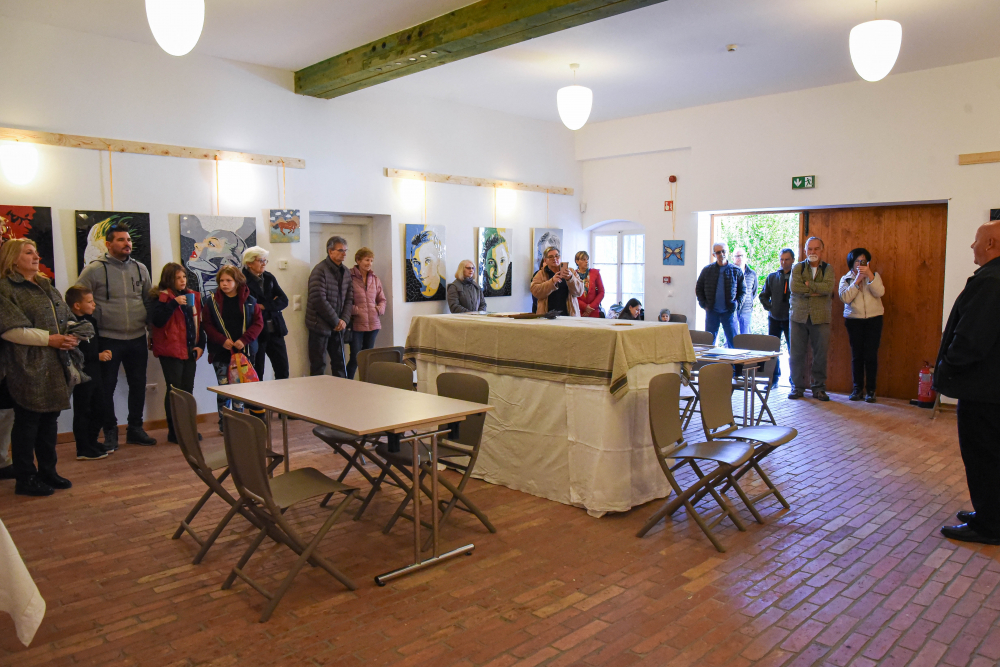 A kiállítást Ormosy Petra, a Pécsi Püspökség turisztikai vezetője nyitotta meg, bemutatva az alkotót és alkotásait. A megnyitón résztvevőket forró tea, pogácsa és kötetlen beszélgetés várta, majd az arra vállalkozók szakavatott segítséggel saját mozaikot is készíthettek.