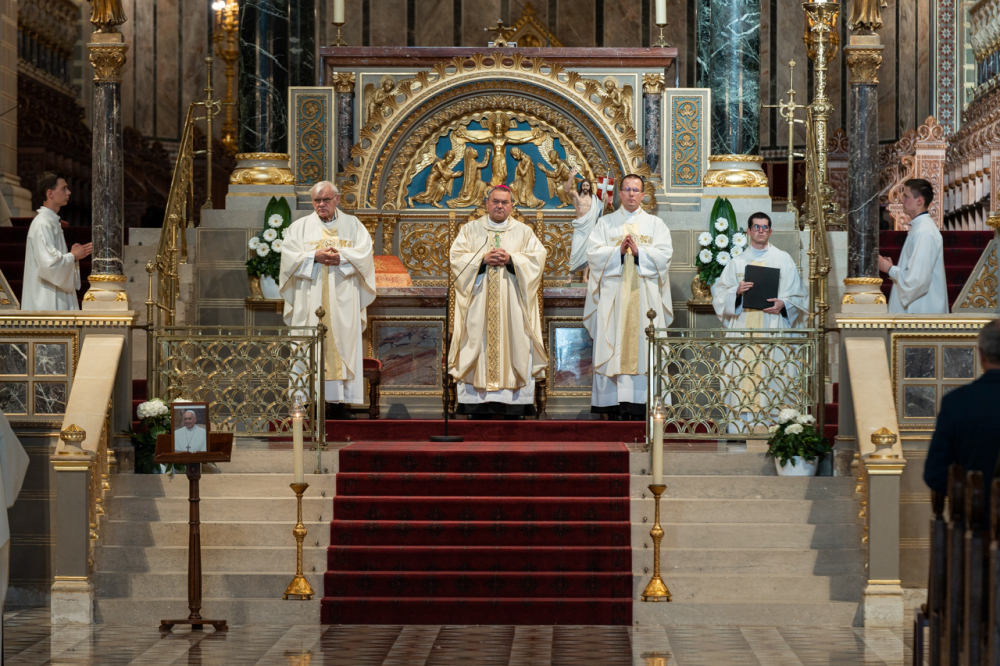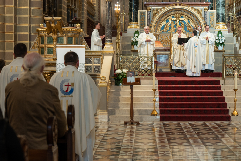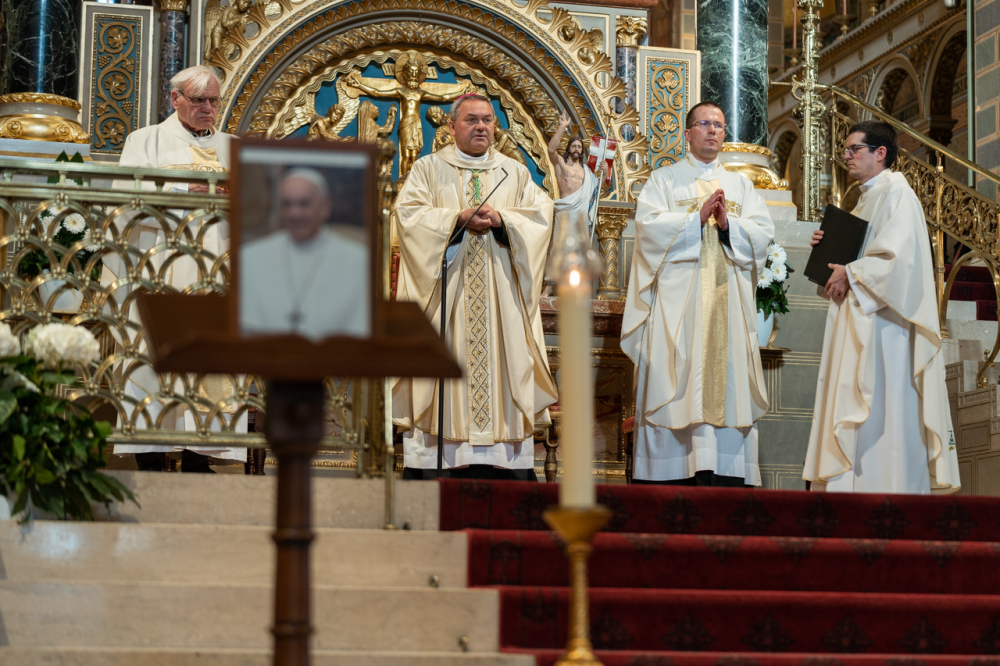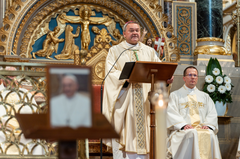 Hálaadásra gyűltünk össze egy életút, egy szolgálat, egy számunkra fel nem fogható kereszt véget értét követően, azzal a reménnyel emlékezve Ferenc pápára, hogy az örök élet áldásában, végtelen isteni szeretetében velünk együtt imádkozik – köszöntötte Felföldi László püspök a megjelenteket.
