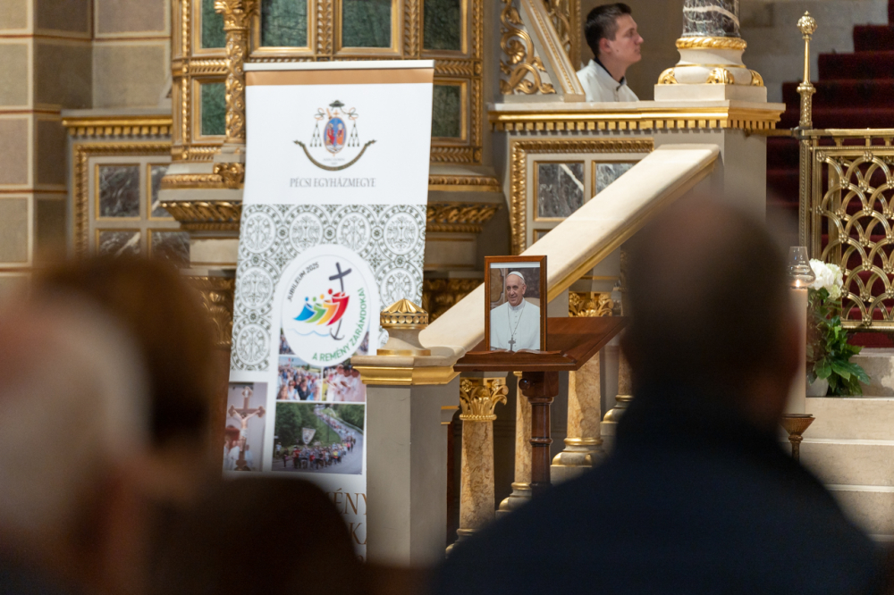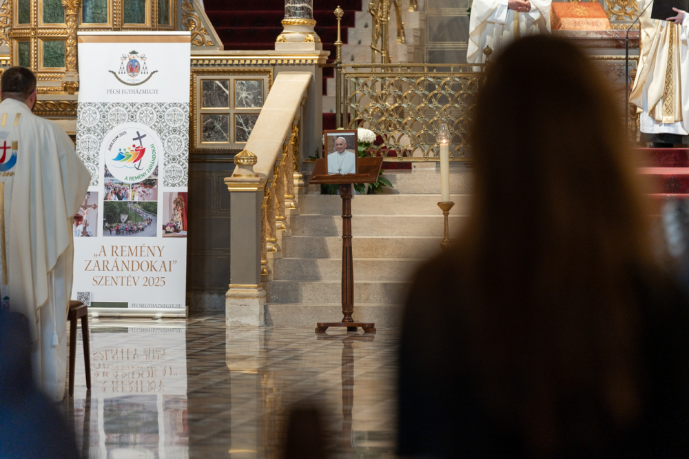 Ferenc pápa húsvéthétfő reggelén bekövetkezett halálát követően Felföldi László megyéspüspök elrendelte, hogy a Szentatya temetésének előestéjén, április 25-én a Pécsi Egyházmegye minden plébániatemplomában mutassák be a legszentebb áldozatot Róma megholt püspökéért és buzdítsák a kisebb közösségeket is, hogy alkalmas módon emlékezzenek meg Szent Péter 266. utódáról.