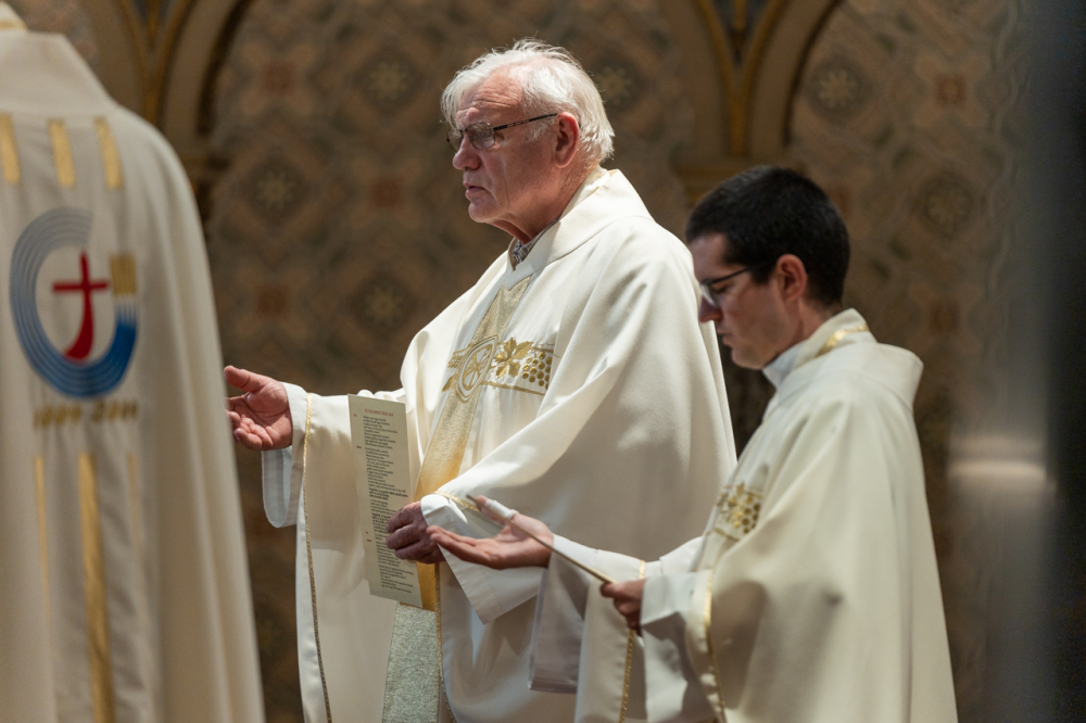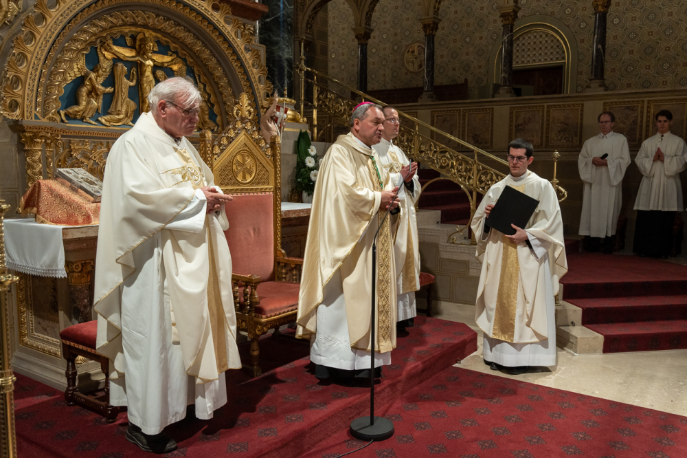 Ehhez a szándékhoz csatlakozott a főpásztar által a pécsi székesegyházban április 24-én este bemutatott szentmise, melyen elhunyt Szentatyánkért a megyéspüspökkel együtt imádkozott Bíró László nyugalmazott tábori püspök, dr. Kvanduk Frigyes általános helynök, Máger Róbert püspöki irodaigazgató, a székesegyház plébánosa, Molnár Erik püspöki titkár és a jelen lévő papság. A zenei szolgálatban a székesegyház Palestrina Kórusa, valamint dr. Kovács Szilárd Ferenc orgonaművész működött közre.