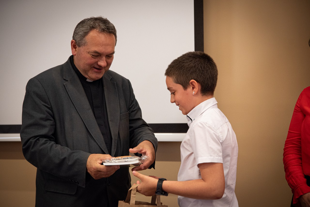 Mivel a döntő előtti napon, május 8-án választották meg a bíborosok XIV. Leó pápát, ezért a résztvevők megnéztek egy rövid összeállítást arról, amikor az új pápa először jelent meg a nyilvánosság előtt és először beszél az egybegyűlteknek. A szervezők segítettek a gyermekek számára értelmezni a felvételeket, melyeken a Szentatya a versmondók példaképe is, mert meghatottan állt az emberek előtt, talán egy kicsit zavarban is volt, mégis pontosan és szépen mondta el a mondanivalóját – tájékoztatott Sipos Edit hitoktatási munkatárs.