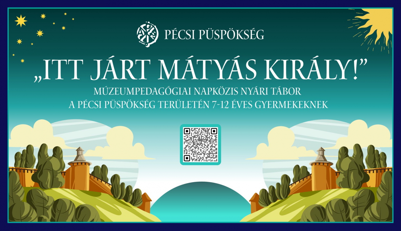 A Pécsi Egyházmegye turisztikai helyszíneit működtető Pécsi Püspökség július 7-11. között idén is megszervezi a korábbi években nagy népszerűségnek örvendő napközis nyári táborát 7-12 éves gyermekeknek. Jelentkezési határidő: 2025. június 23.