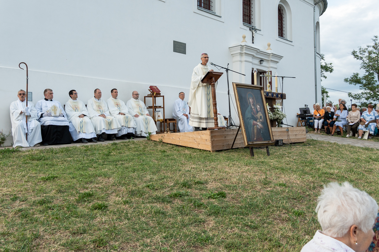 A szónok püspök szentbeszédében a Boldogságos Szűz Mária személyét méltatva beszélt arról, hogy miért fontos számunkra a Szűz Anya személye és hogy a magyarság miért fohászkodik Isten anyjához, mint a Magyarok Nagyasszonyához.