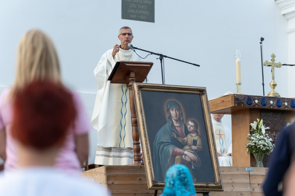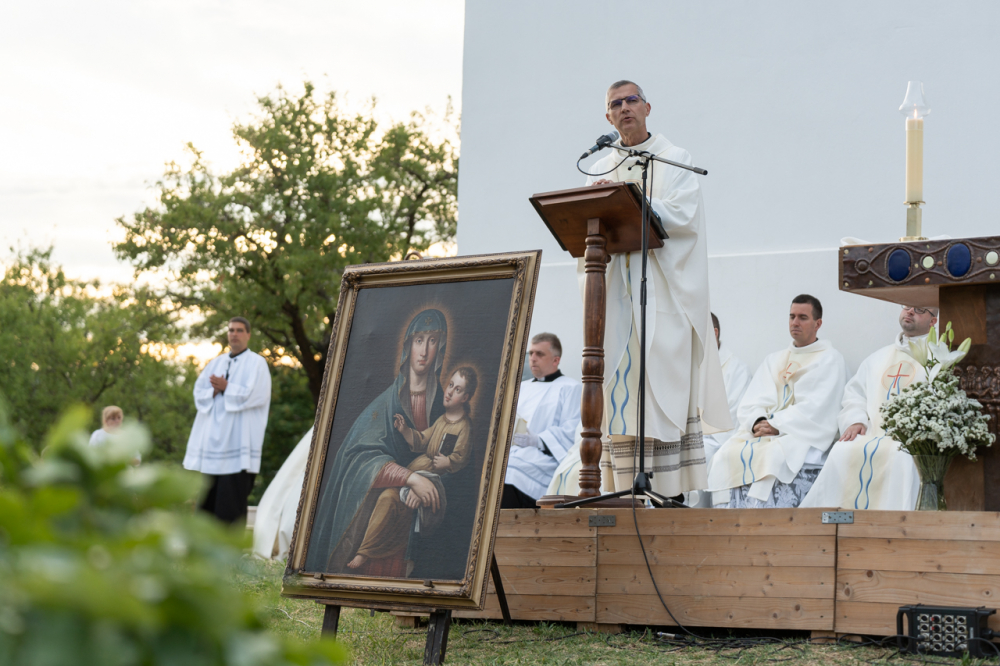 Hangsúlyozta, a Szűzanya alakját úgy kell tisztelnünk, akin keresztül a Megváltó be akarta teljesíteni a zsidó népnek tett messiási ígéreteket, és akin keresztül a Megváltó emberi életutat vállalt magára. Emberként született a világra az Isten Fia, ezért a Boldogságos Szüzet méltán nevezzük Isten Anyjának. Máriának jutott az a szerep, hogy igent mondjon Isten kérésére és világra szülje a Megváltót. De ahhoz, hogy Isten hatékony erejének kegyelme kiáradjon a világba, nekünk is igent kell mondani Isten kérésére. Amikor a Szűzanya köténye alá bújunk, ehhez kérünk erőt, vigasztalást és bátorítást – fogalmazott Martos Levente Balázs.