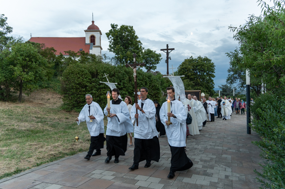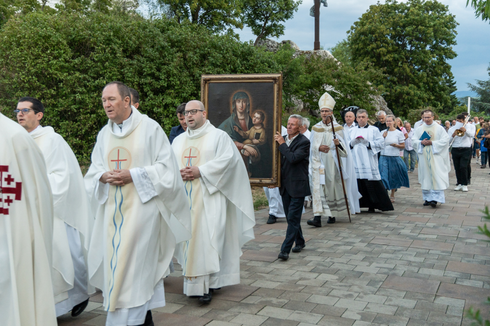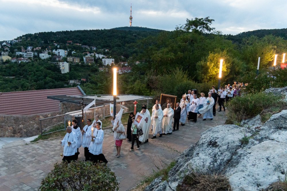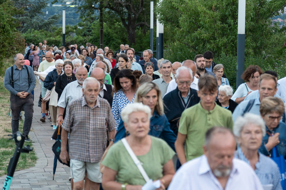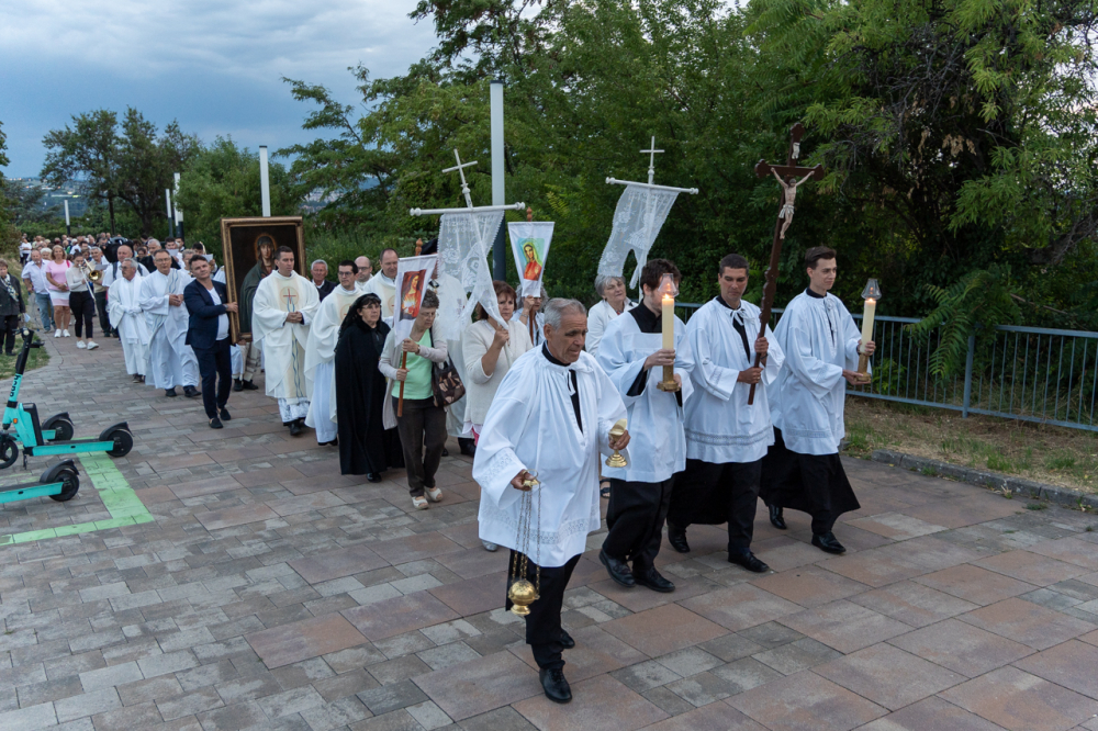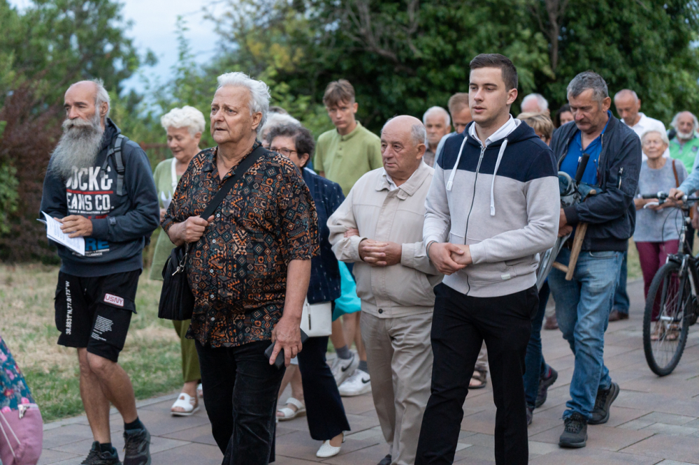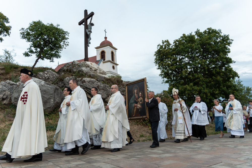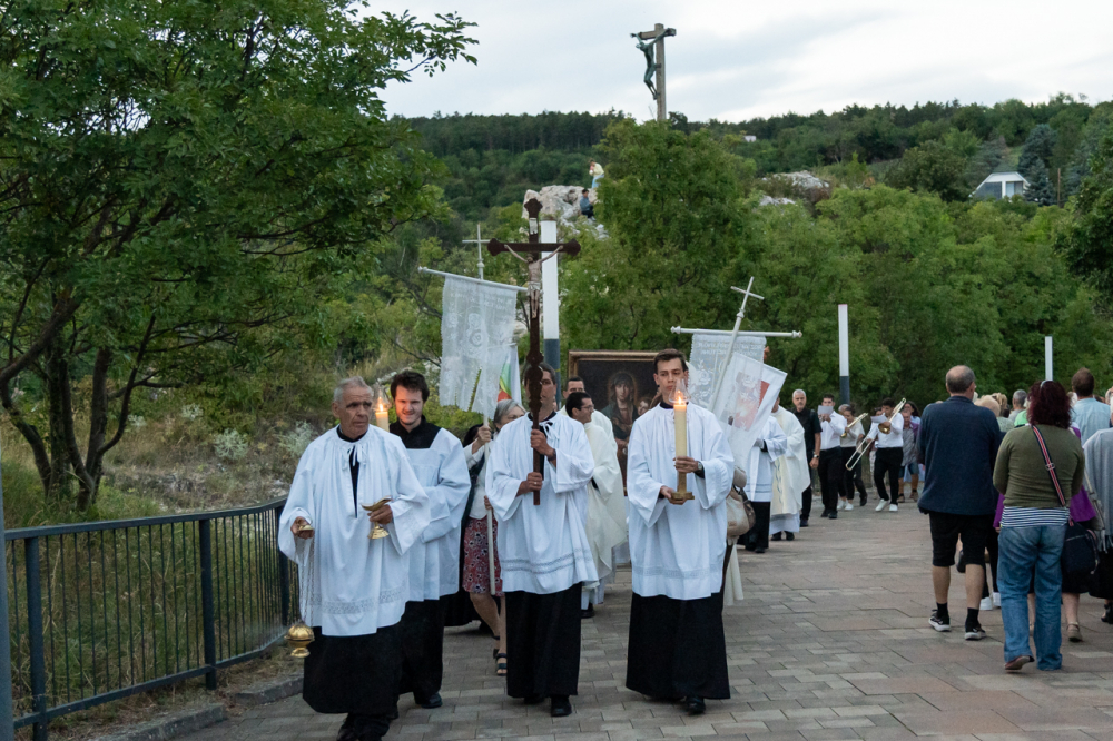 A két napon át tartó búcsúi ünnep nyitó szentmiséje után a Havas Boldogasszony-kegykép másolatával a Boldogságos Szűzanya tiszteletére körmenetben énekeltek és imádkoztak a résztvevők a Pécsi Egyházmegyéért és Egyházunkért a templom melletti Havi-hegyi sétányon.