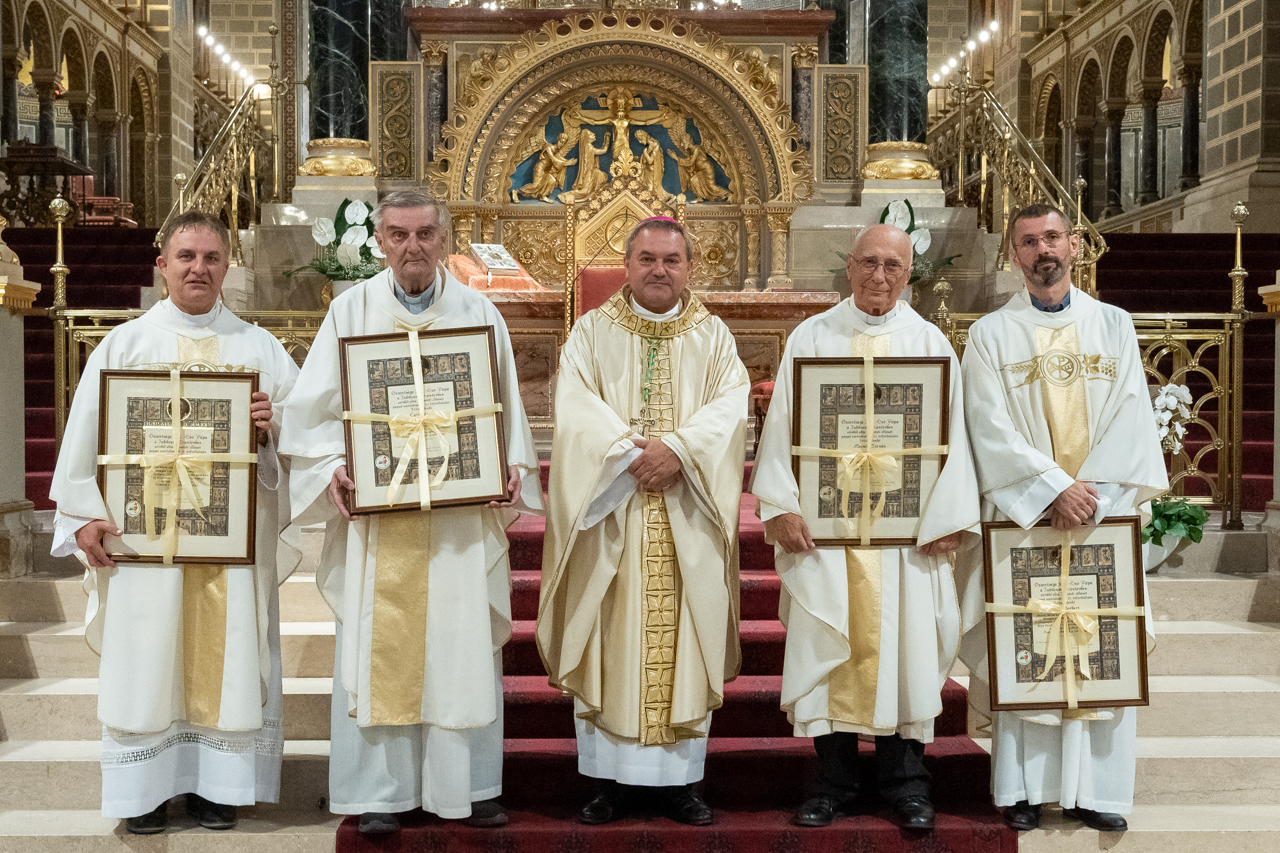 A Pécsi Egyházmegye hagyománya szerint minden évben augusztus 23-án, az egyházmegye alapításának évfordulóján köszöntik a pappá szentelésük valamely kiemelkedő jubileumát ünneplő lelkipásztorokat. 2025-ben öt egyházmegyés papnak adta át a pápai áldást tartalmazó vatikáni dokumentumot Felföldi László pécsi megyéspüspök a papság jelenlétében a pécsi székesegyházban celebrált ünnepi szentmisén.