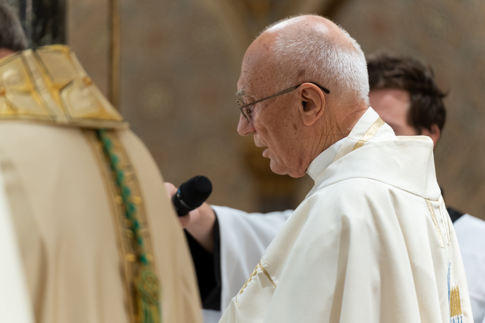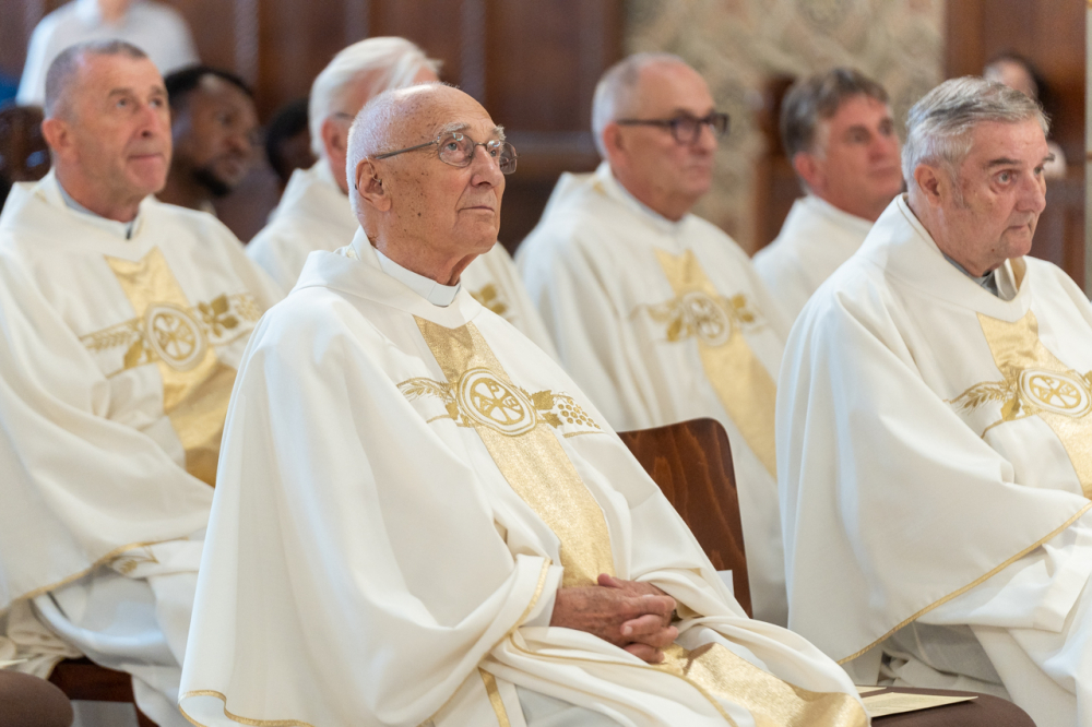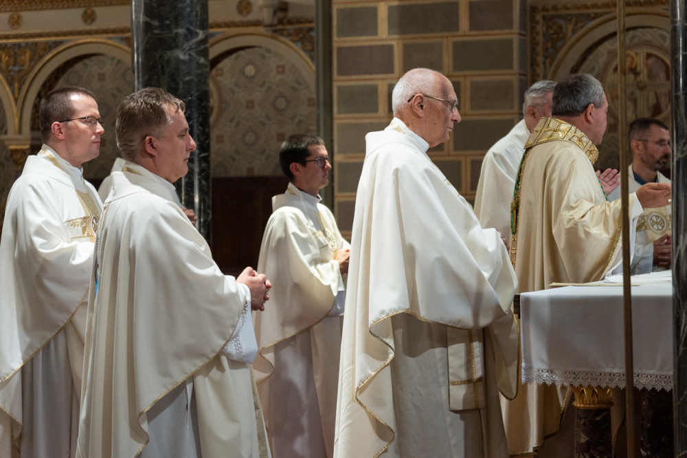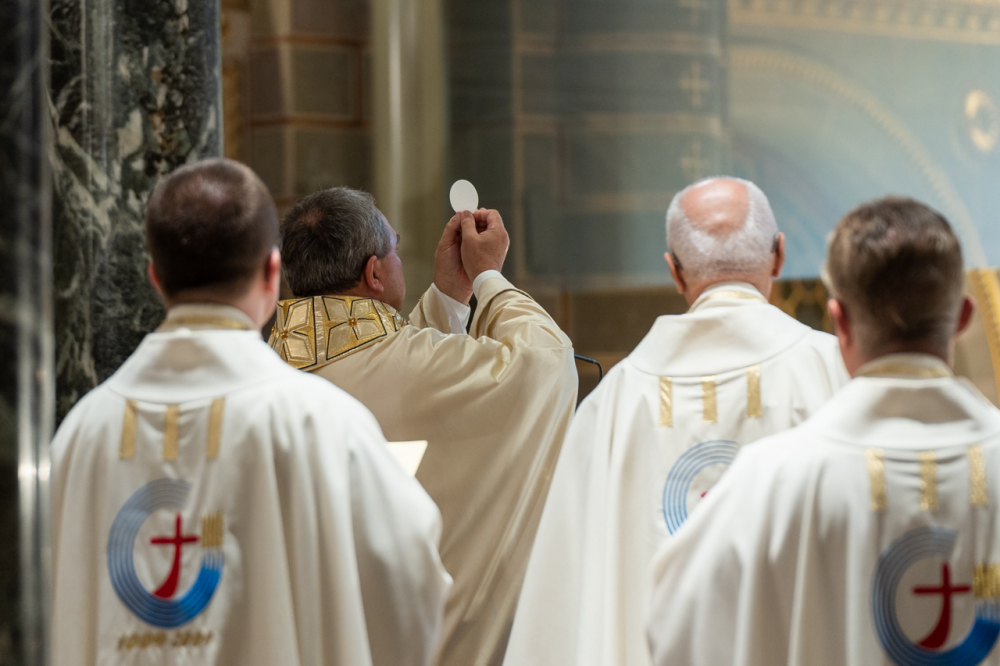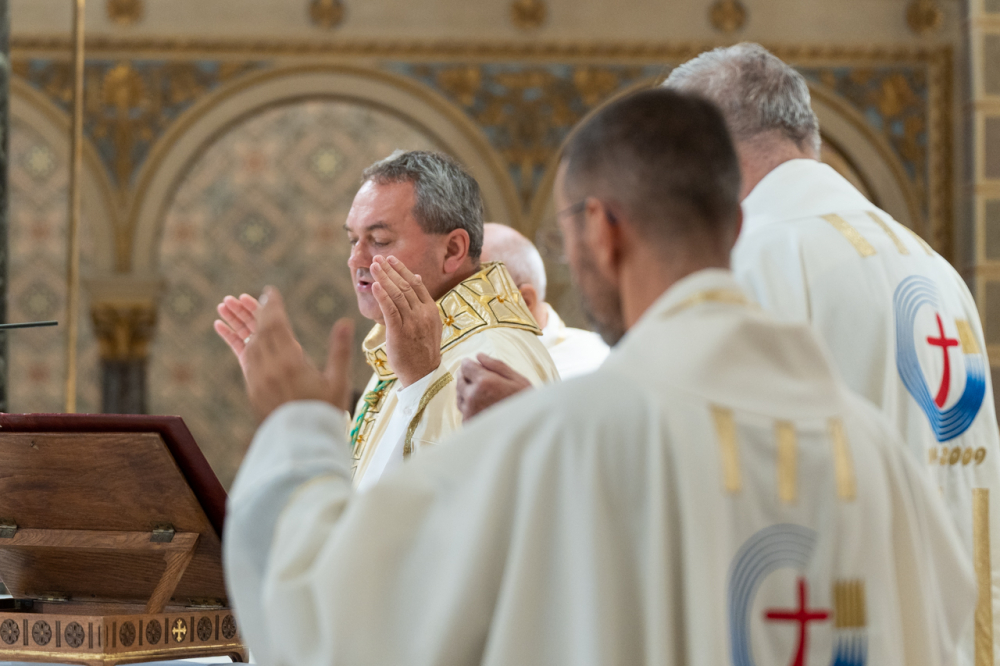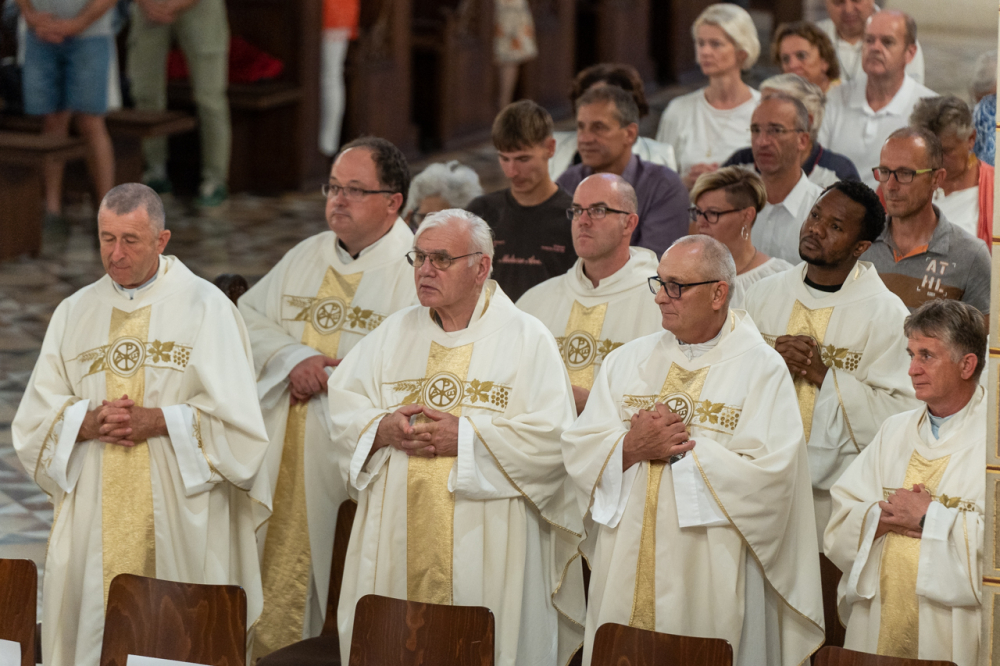 A szentmise az idén jubileumi évfordulót ünneplő lelkipásztorok főpásztori köszöntésével zárult, melyben Felföldi László püspök a Jóisten gazdag, éltető és megerősítő áldását kérte lelkipásztori szolgálatukra.
