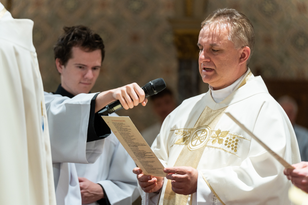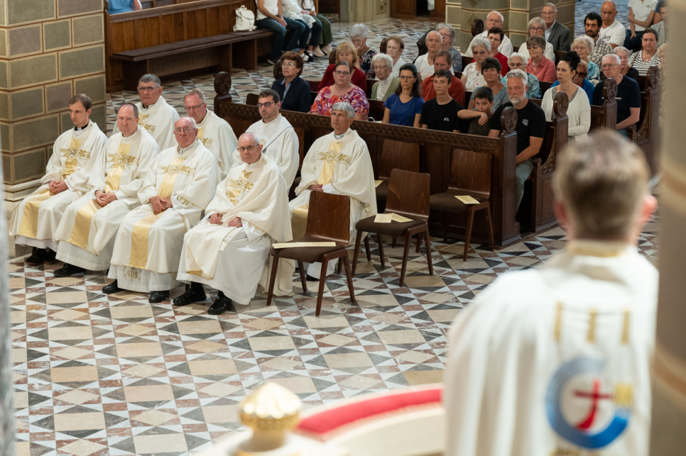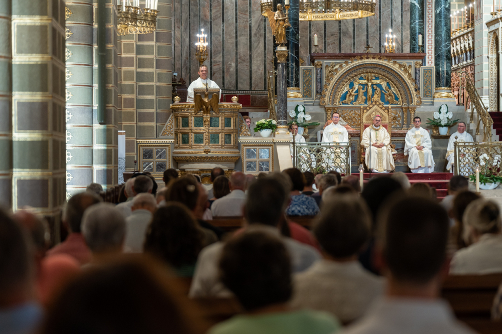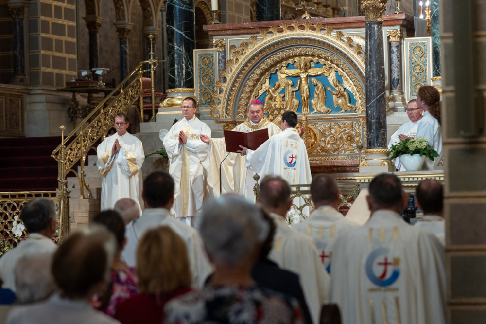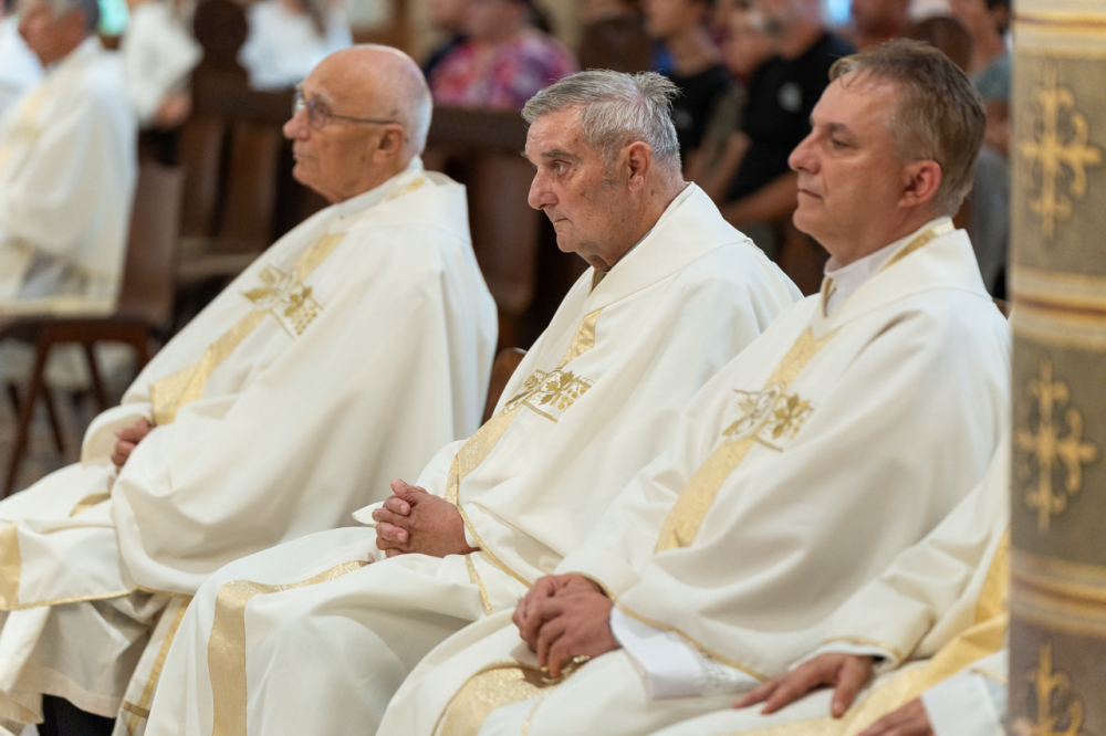 Dr. Hegedüs János a szentmise ezüstmisés szónoka szentbeszédében kiemelte, egyházmegyénk Szent István király általi alapításának 1016. évfordulója mélyebbre és korábbra vezet bennünket. Az ünnep valójában az alapítóra, Jézus Krisztusra mutat, hiszen az Üdvözítő rakta le az Egyház, benne a Pécsi Egyházmegye alapjait is.