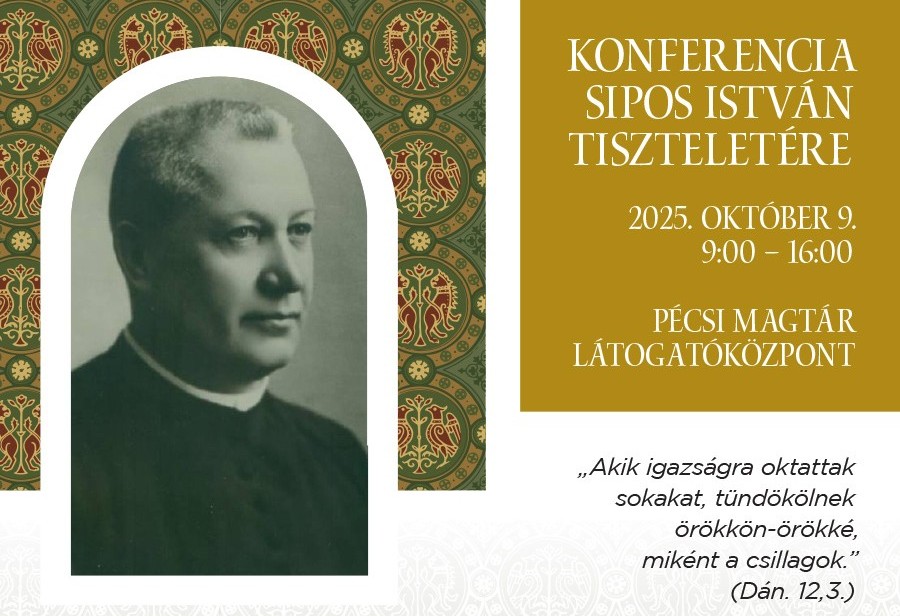 A pécsi kánonjogi műhelyek egyik kiemelkedő egyénisége, Sipos István pécsi nagyprépost, nemzetközileg is elismert kánonjogász születésének 150. évfordulója alkalmából rendezik meg a konferenciát október 9-én a Magtár Látogatóközpontban.