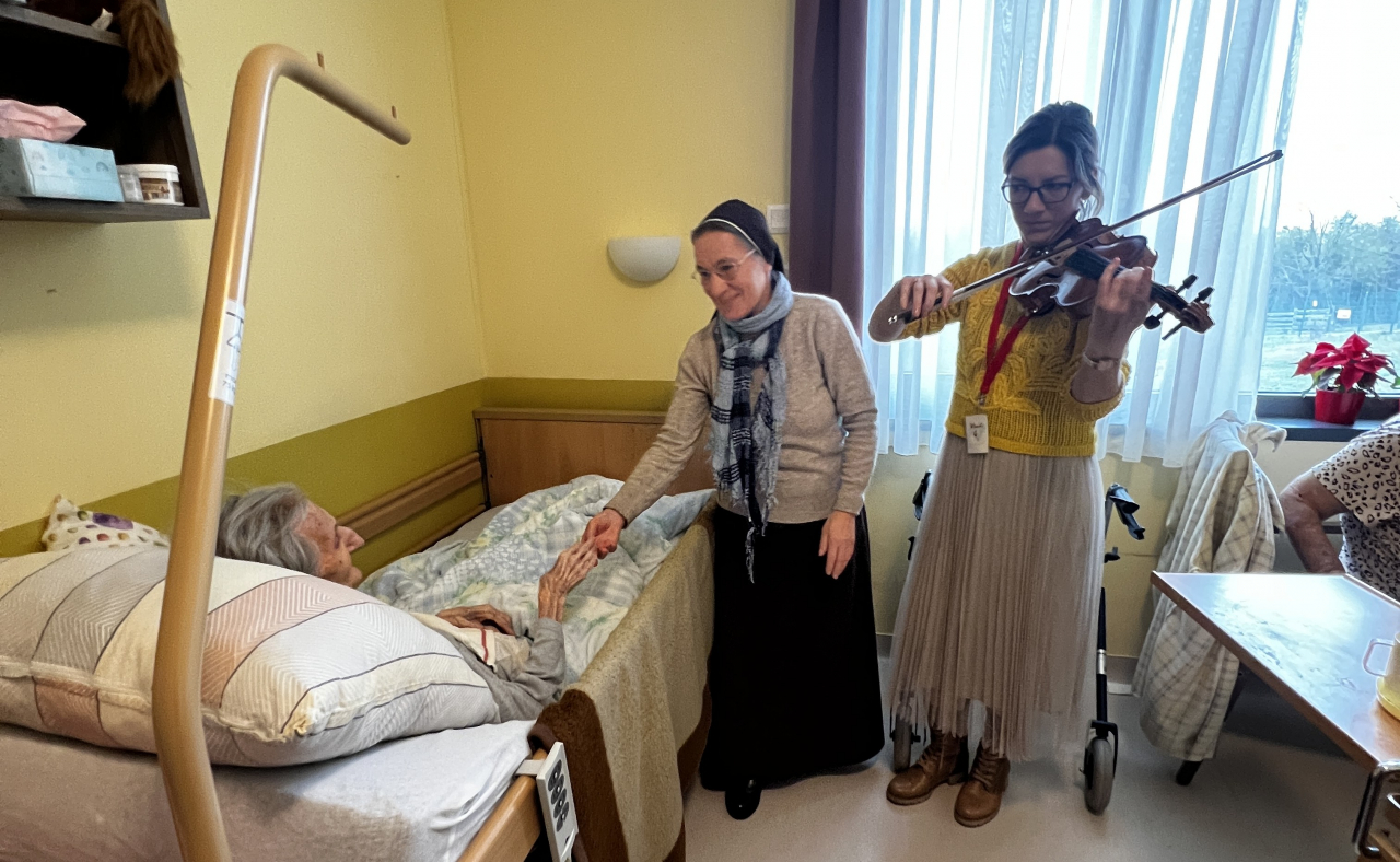 A látogatások során Fazekas Zsófia beteglátogató hegedűjátéka és Siptár Dana kórházlelkészségi koordinátor éneke töltötte meg az otthon tereit. A csapathoz csatlakozott Dánél Mária Francesca betegápoló szerzetesnővér, aki egyéb időszakban a telefonon hívható lélekerősítő vonalon segíti azokat, akiknek szüksége van beszélgetésre, illetve Kiss Andrea, az intézmény mentálhigiénés munkatársa.