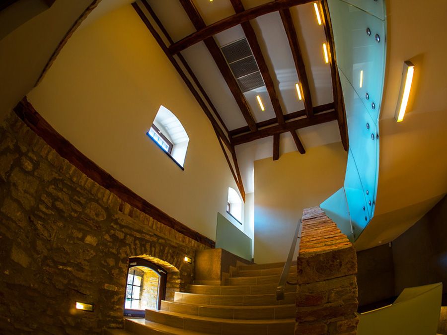 Das Besucherzentrum dient außer Auskunft für örtliche Besucher dem Empfang und der Betreuung ein- und ausländischer Touristen, damit ihr Interesse an den Sehensfürdigkeiten der Stadt geweckt wird. In den überirdischen Geschossen des Gebäudes befinden sich ein für 200 Besucher vorgesehener Konferenzsaal, ein kleinerer Seminarraum, ein Filmvorstellungsraum und ein Souvenirgeschäft. Der unterirdisch liegende, im 18. rbaute zweistöckige Weinkeller erwartet die Besucher mit Weinbausaustellung, Weinproben und mit einem unterirdischen Tunnel.