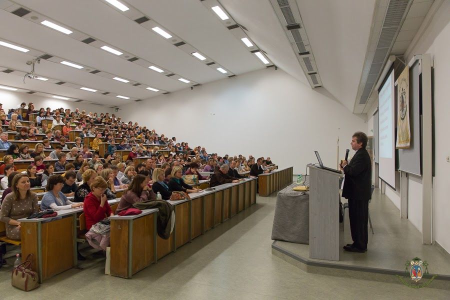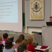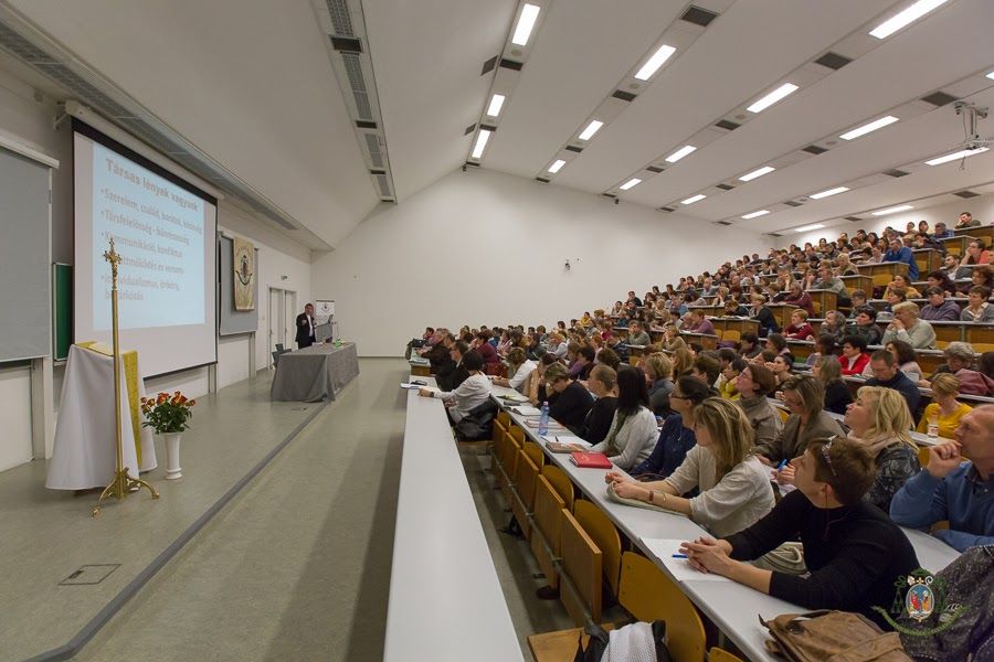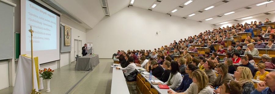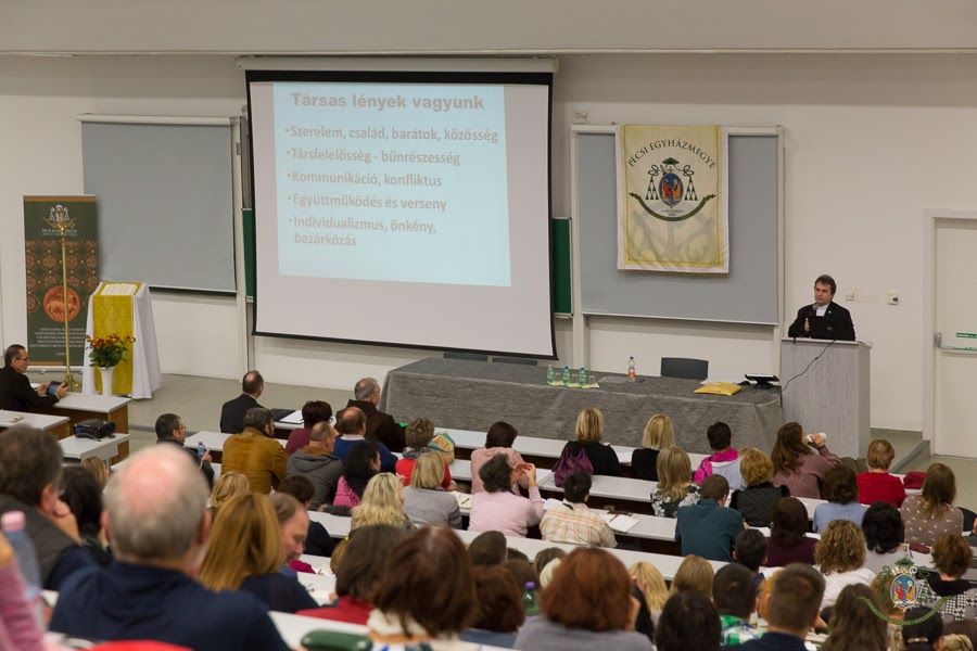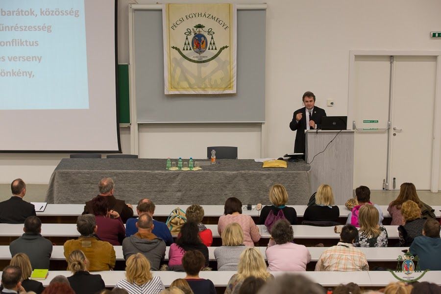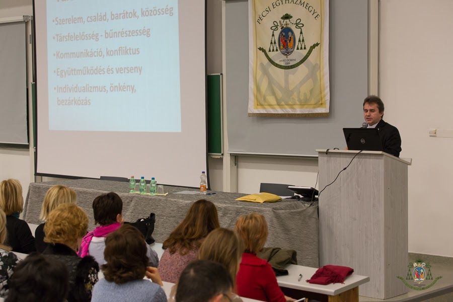 Az első előadó, dr. Papp Miklós morálteológus vezetésével a keresztény emberkép fogalmát járhatták körbe a pedagógusok. Az előadó hangsúlyozta: minden ember szeretetre született. A keresztény pedagógus csak akkor tudja eredményesen végezni missziós tevékenységét, ha Istennel, önmagával és embertársaival is rendben van a kapcsolata, azaz a szeretete mindhárom irányban kiegyensúlyozott. A teológus előadásában a középpontba helyezte a gyermeket, aki nem csak szülei, hanem pedagógusai számára is kincs, csoda, Isten ajándéka. Az előadás életvezetési tanácsait, gyermekképét, mély mondanivalóját és a Jelenits atyától kölcsönzött gondolatot, miszerint a pedagógusokra jellemző az a makacs hit, hogy „érdemes a borsót a falra hányni" – azaz a tanítványokban az elültetett mag szárba szökken, termést hoz, s a gyümölcs beérik – mindenképp magukkal vitték a jelenlévők.