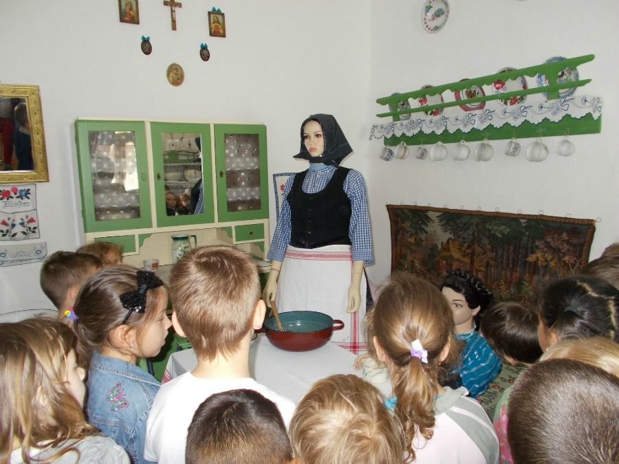 A látogatás során a gyerekek a mindennapi élet egykori használati tárgyai mellett a magyarországi németajkú lakosság által használt szavakat is megismerhették. Láttak tisztaszobát, benne szentképeket, a sublóton kegytárgyakat, imádságos könyveket. Bibliát, régi bútorokat, a sombereki népviseletet, a stafirungba szánt holmikat. Megtanulták, mi a különbség a sparheld konyha, amelyet ünnepi alkalmakkor használtak és a lakókonyha között, ahol a sparheld kályha mellett polcos stelázsi, faajtós kredenc is helyet kapott.