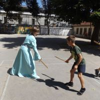 A nap második részében több csapat az iskola falain kívül tevékenykedett: oklevelet másoltak a levéltárban, Szent László emlékhelyeit keresték fel, az utca emberét szólították meg vagy épp a Szent László utcát ismerték meg alaposabban. Akik az iskolában maradtak, vívni, sakkozni, hímezni tanultak, illetve a lovagi torna helyszínét készítették elő.
