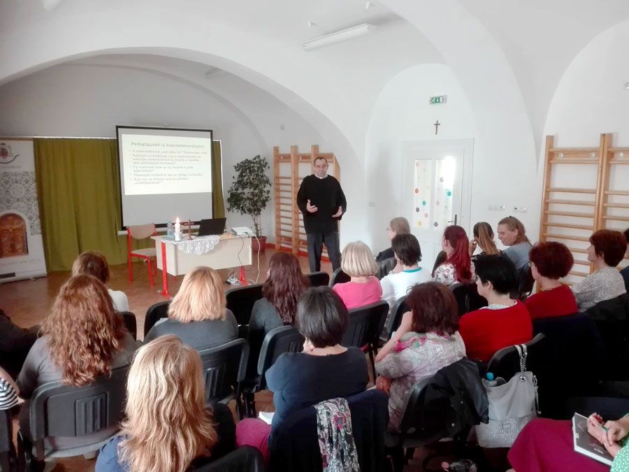 A Katolikus Pedagógiai Intézet szervezésében Görbe László piarista szerzetes tartott előadását a mohácsi katolikus iskola és óvoda dolgozóinak. Az első részben az oktatás történetét és változásait ismertette az ókortól napjainkig, majd az iskola szervezését az iskolaigazgató szemszögéből mutatta be, amelyben nagy hangsúlyt kaptak a társadalom elvárásai az iskolával szemben. A katolikus oktatási-nevelési intézmény tantestületének tagjai is küzdenek a „pedagógus betegségekkel”, a munkamániával, vagy a munka értelmetlenségének érzésével. Ugyanakkor a pedagógus munka életpálya, ahol örülünk, hogy részt vehetünk a „katedrális építésében”, és nem csak a pénzért dolgozunk ̶ fogalmazott az előadó. A tanár példakép, ezért tisztában kell lennie azzal, hogy szabad ember-e, nem pedig valamilyen hamis támasz rabja. A keresztény pedagógusnak ismernie kell vallását, sugárzó, optimista személyiségnek kell lennie, aki az elbotló diáknak is segíteni akar és tud. Végül az univerzum csodálatos világát ismerhették meg a résztvevők. A fizika szakos szerzetes rádöbbentette a hallgatóságot arra, hogy a világot az Isten tökéletes rendezési elv alapján alkotta, amelyben az ember is teremtmény, aki végtelenül keveset tud a világegyetemről.