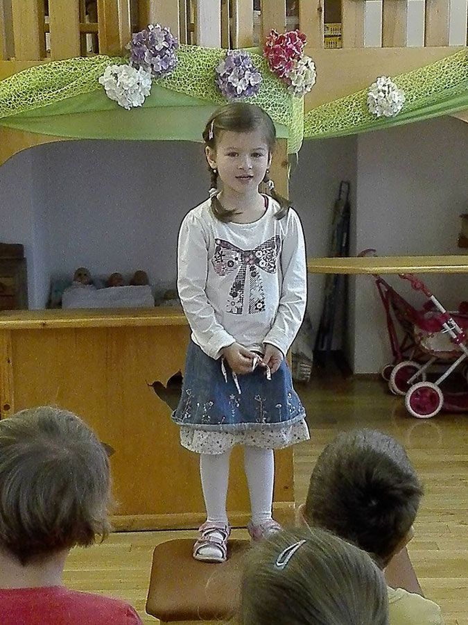 Az iskolába készülő nagycsoportosok szüleik segítségével keresték meg otthon azt a verset, amellyel felkészültek az ünnepre. Április 11-én délelőtt a csoportszoba színházzá alakult, a nézőtéren kíváncsi hallgatóság foglalt helyet. A gyermekek egyesével léptek a fakockákból épített, zsámolyból kialakított „színpadra”, ahol hangosan, bátran szavalták el a választott költeményt.Weöres Sándor, Móricz Zsigmond, József Attila, Bartos Erika, Osváth Erzsébet, Nagy Bandó András és sok más költő gondolatát tolmácsolták a gyerekek. A közönség nagy tapssal jutalmazta a szereplőket.