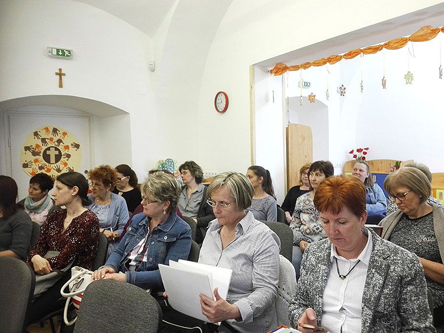 Április közepén az óvoda pedagógusai a Pécsi Egyházmegyével közösen szerveztek szakmai napot óvodapedagógusok részére. A nap középpontjában a gyermek a térbeli tájékozódás fejlesztése, a test megismerése, a téri irányok begyakorlása állt. A játékkal párhuzamos óvodai tevékenységeken keresztül történő tanulás és gyakorlás módszereivel, valamint azok gyakorlati megvalósításával ismerkedhettek meg az résztvevők. Deliné Székely Ágnes óvodapedagógus, szenzomotoros fejlesztéssel foglalkozó szakember a téri észlelésről, a téri tájékozódásról, a csecsemőkori reflexek meglétéről, azok hatásáról tartott gyakorlatias előadást.