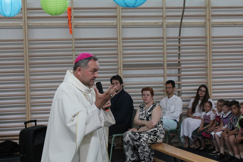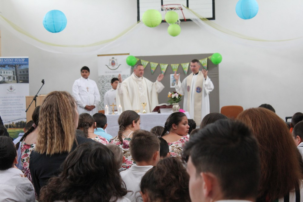 Ember, ünnep és szentmise - ennek a három fogalomnak az összefüggését járta körül beszédében a főpásztor. Az embernek, az Isten legkülönlegesebb teremtményének a hivatása az, hogy közösségben éljen, egymagában nem működik jól - fejtette ki Felföldi László. Annál szebb az ember élete, minél inkább támaszkodhat a többiekre, egyúttal minél inkább maga is támasza a többieknek, kezdve a család tagjain. Ha az ünnepek kimaradnak az ember életéből, akkor hangsúlytalanná, szürkévé, egyformává válik az egész, íztelen, színtelen lesz. A hétköznapok egyhangúan ismétlődő feladatai lecsupaszítják az életet. Az ember közösségi létének egy különleges ünnepét hagyta ránk Jézus, melyben ő maga, az Isten maradt itt velünk. Ezt elevenítjük fel minden szentmisében. Közösségi életünk alapja a szeretet. A szeretetet mindenki felismerheti saját önzetlen tetteiben, illetve egymásra irányuló figyelmességünkben, diákok tanáraikban, tanárok diákjaikban egyaránt.