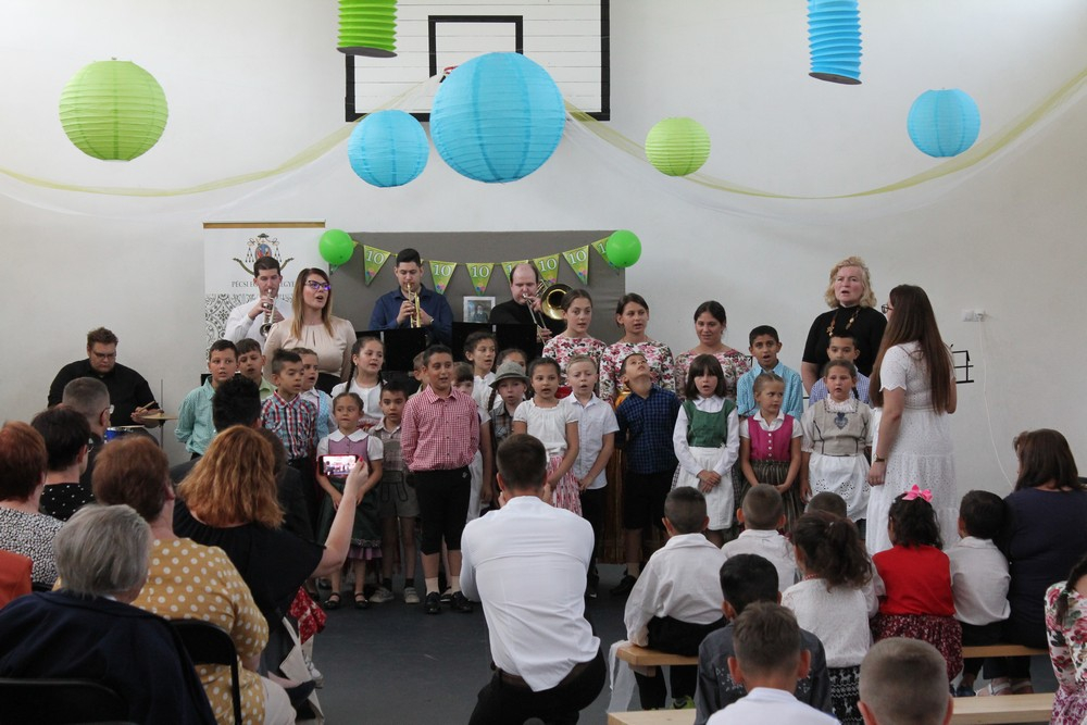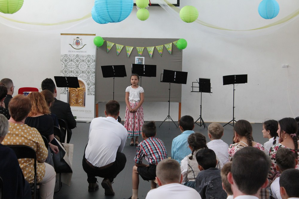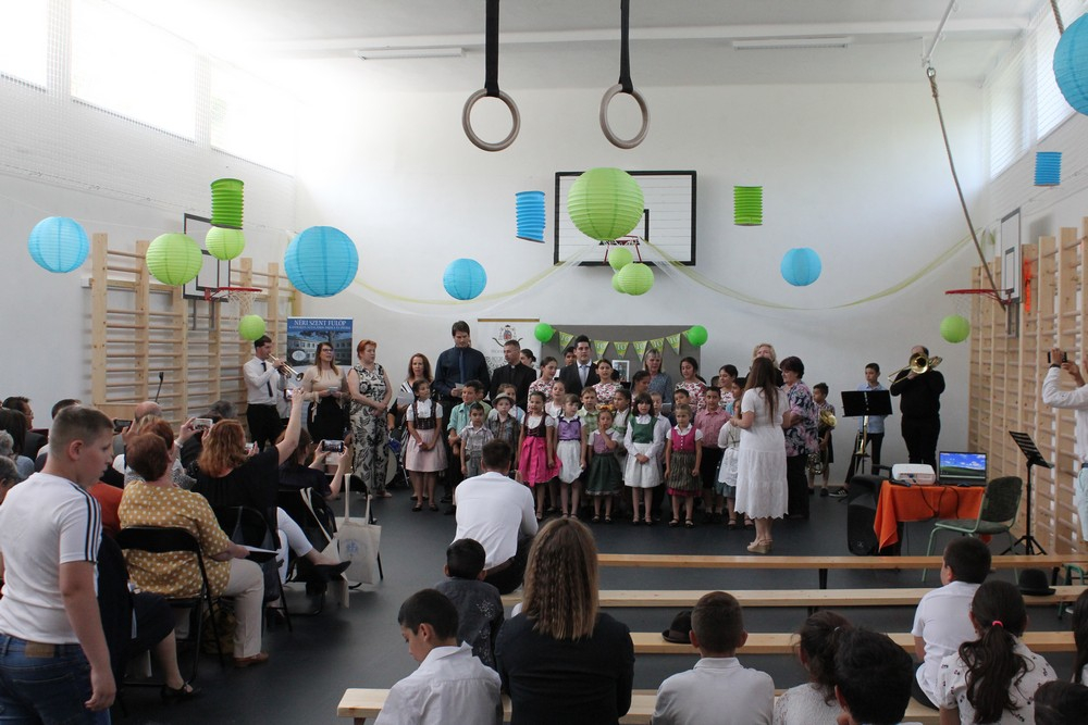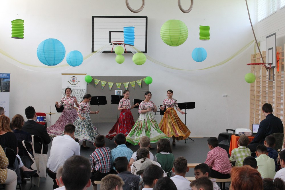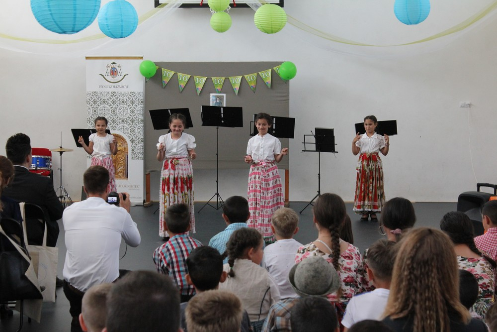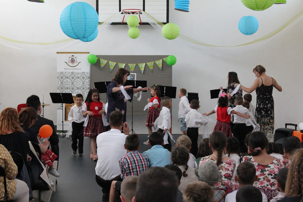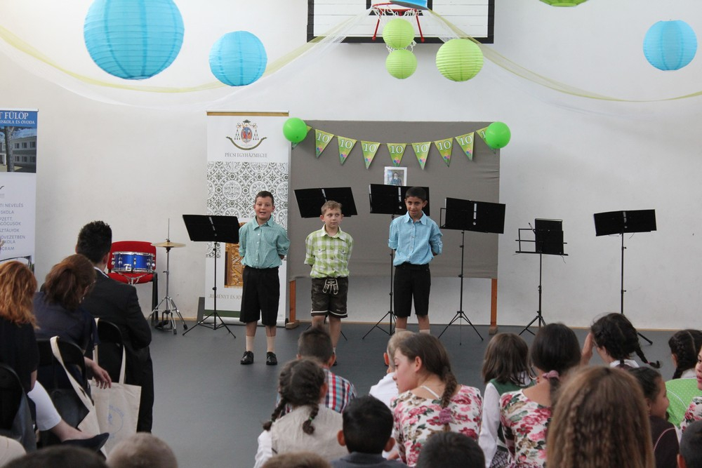 A szentmise után a gyerekek és tanárok közös zenés, táncos műsorával folytatódott az ünnepség, mely alkalmat kínált a meghívott vendégeknek arra, hogy megcsodálják az iskola helyi és országos versenyeken szép eredményeket elért diákjainak előadásait. A cigány hagyományok mellett nemzetiségek szokásai is helyet kaptak a vidám műsorban.