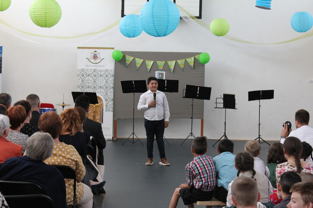 Az ünnepség zárásaként Király Péter iskolaigazgató a jubileumi évfordulóhoz kapcsolódóan emlékplaktetteket adományozott az arra érdemes egykori és jelenlegi kollégáinak. Zombainé Kutas Éva korábbi iskolaigazgató-helyettes összefoglalta az iskola történetének 145 évét, ami alatt a kezdetben Pécs-Szabolcs német kisebbségi iskolájaként működő itézmény végül 2012-ben a Pécsi Egyházmegye által működtetett iskolává vált. Elhangzott, hogy az egyházi fenntartás tervezhetőbbé, megbízhatóbbá tette az iskola korábban olykor bizonytalan működését. A tanári kar jó munkájának, valamint az egyházmegyei támogatásból végrehajtott felújításnak gyümölcse az évről évre növekvő tanulólétszám is.