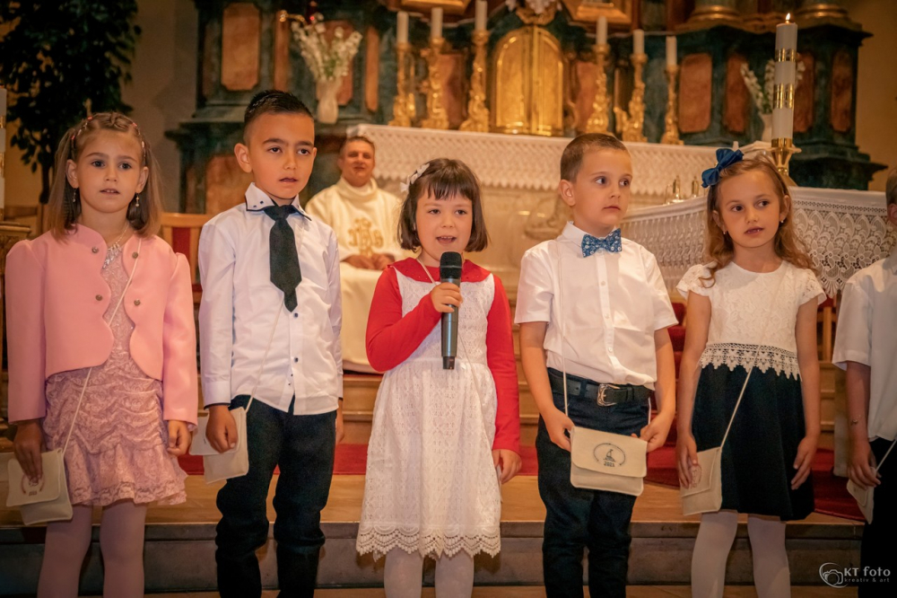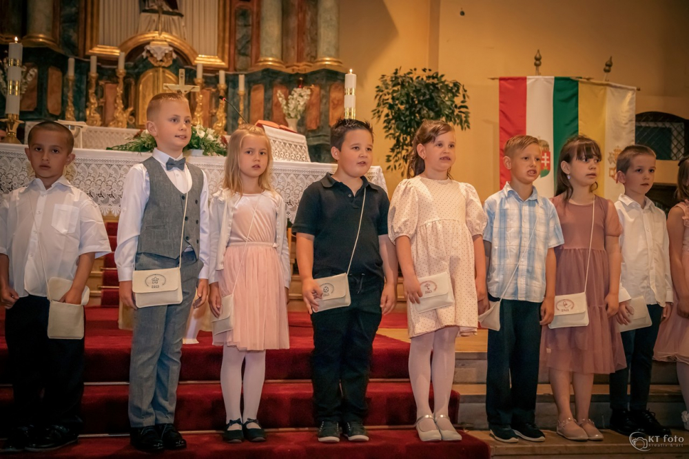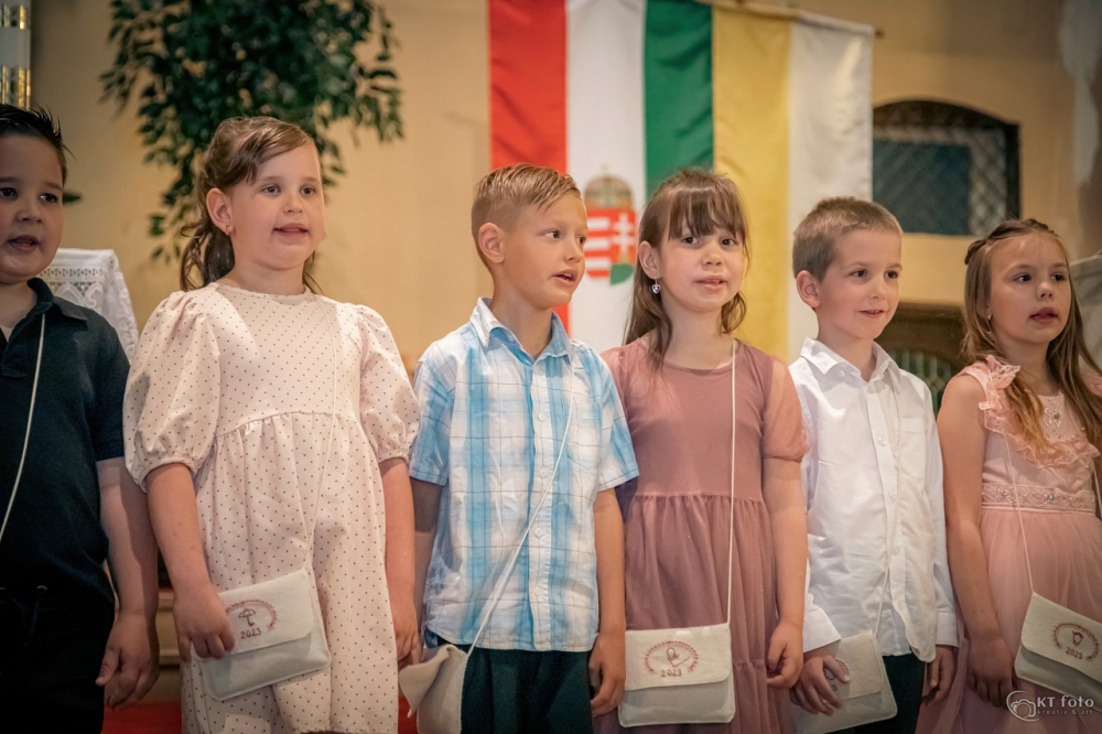 Az óvodás kor különleges jelentőségű egy kisgyermek életében. Ekkor bontakozik ki egyénisége, formálódik személyisége, új kapcsolatokat épít társaival és nevelőivel, megismeri a tágabb világot. Az érzelmi biztonságot nyújtó, szeretetteljes közösségtől való elválás nagy mérföldkő a gyermekek számára. A ballagó gyerekek, jelképesen, egy virágkapun átlépve, vállukon tarisznyával, szüleikkel kézen fogva indultak el erre a nagy útra. Az óvoda négy csoportjába járó, ballagó gyerekek magyar és német nyelvű versekkel búcsúztak el kedves óvodájuktól, az óvónéniktől, dadus néniktől. Műsorukat követően János atya kérte a Jóisten áldását a leendő kisiskolások életére.