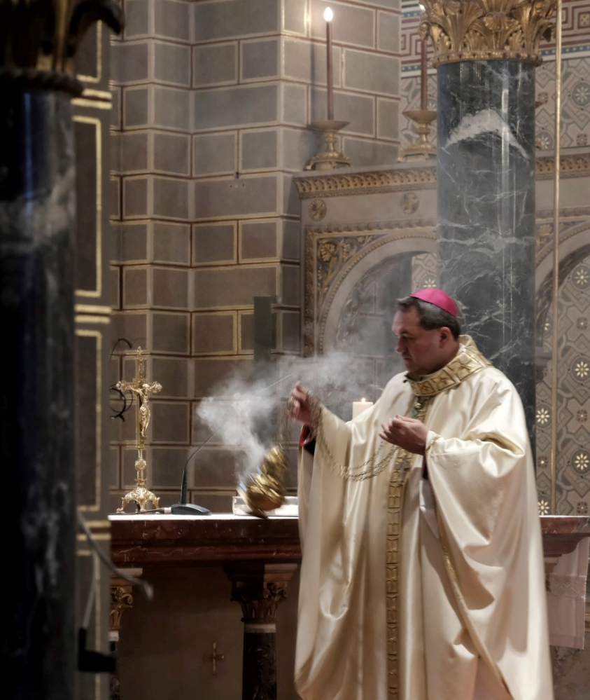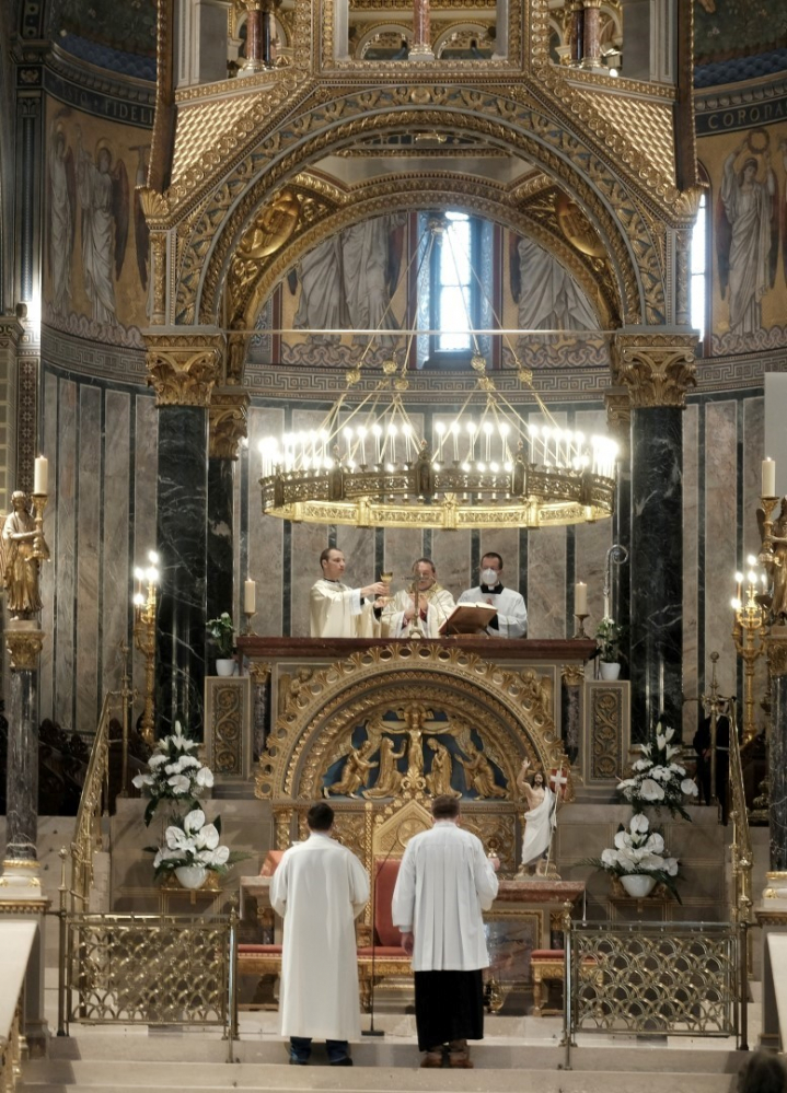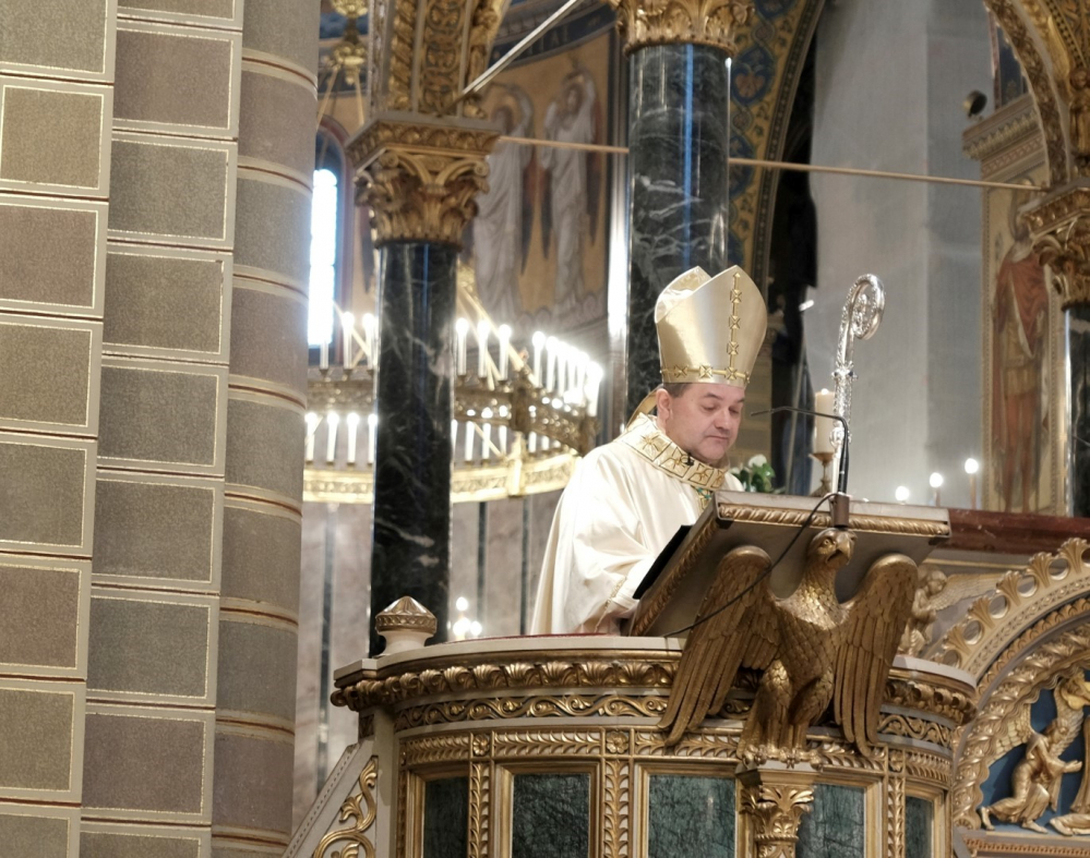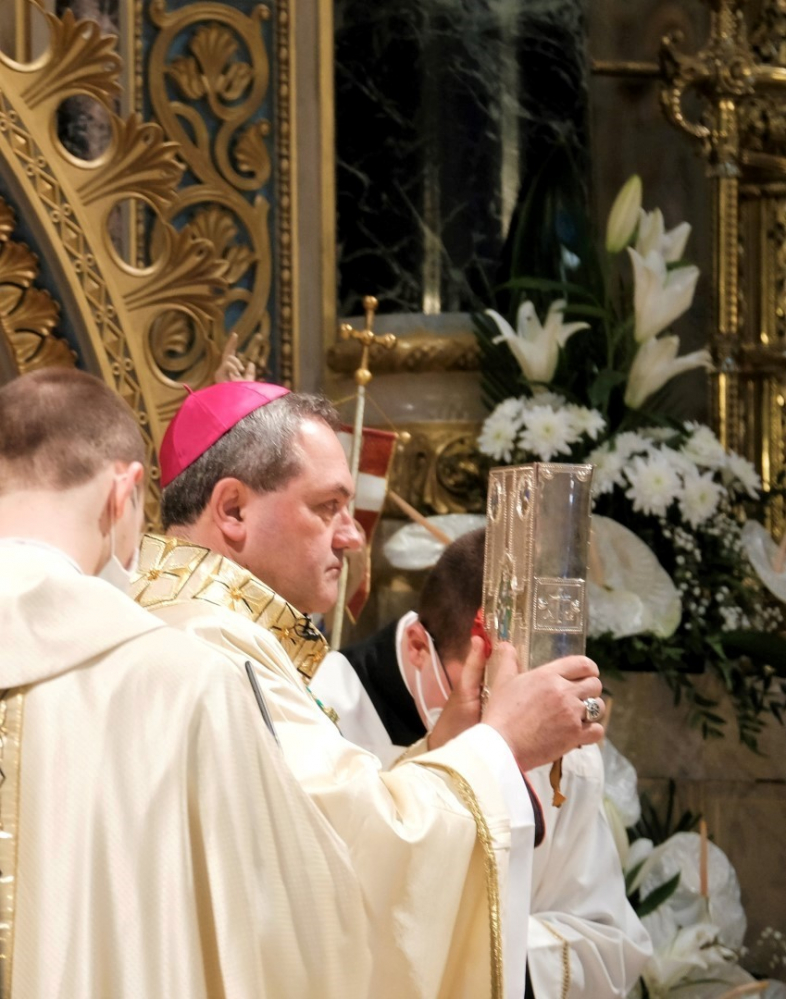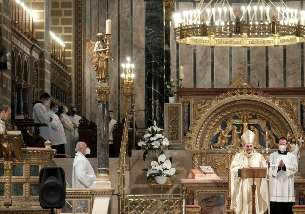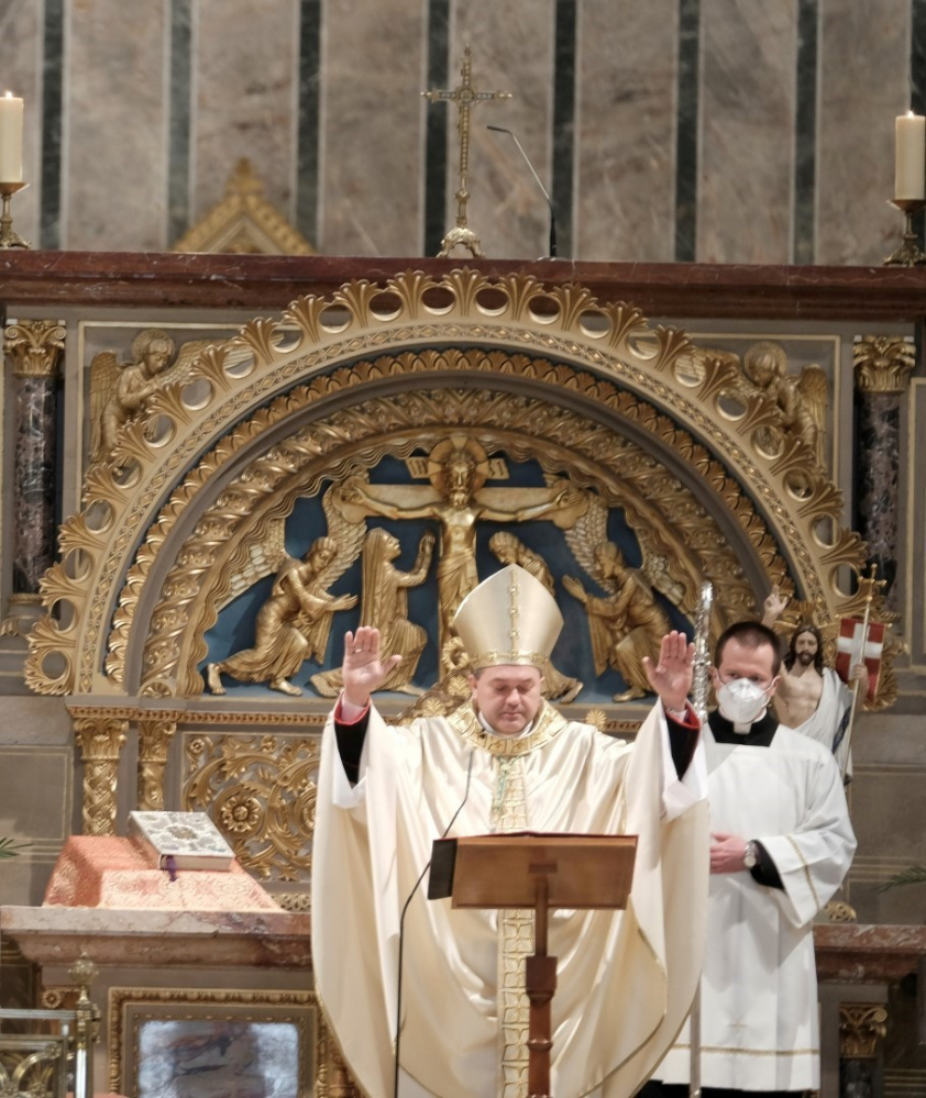 Húsvétvasárnap, Urunk feltámadásának főünnepén Felföldi László pécsi megyéspüspök celebrált szentmisét a Pécsi Székesegyházban.