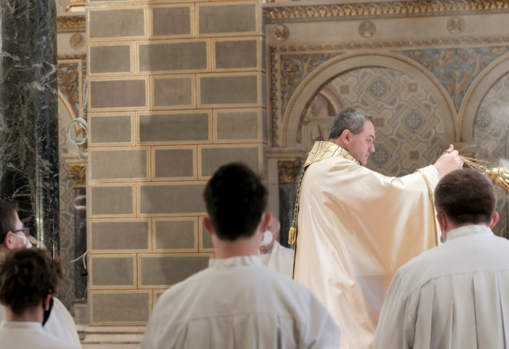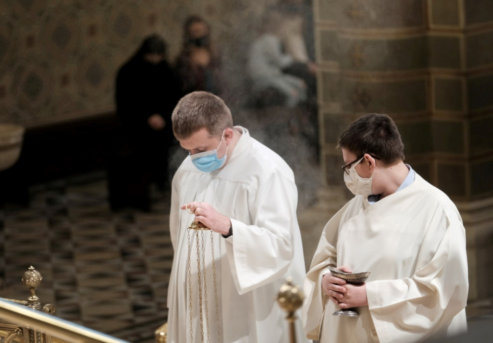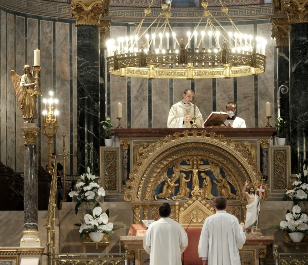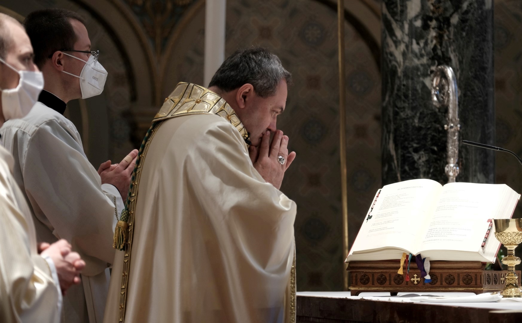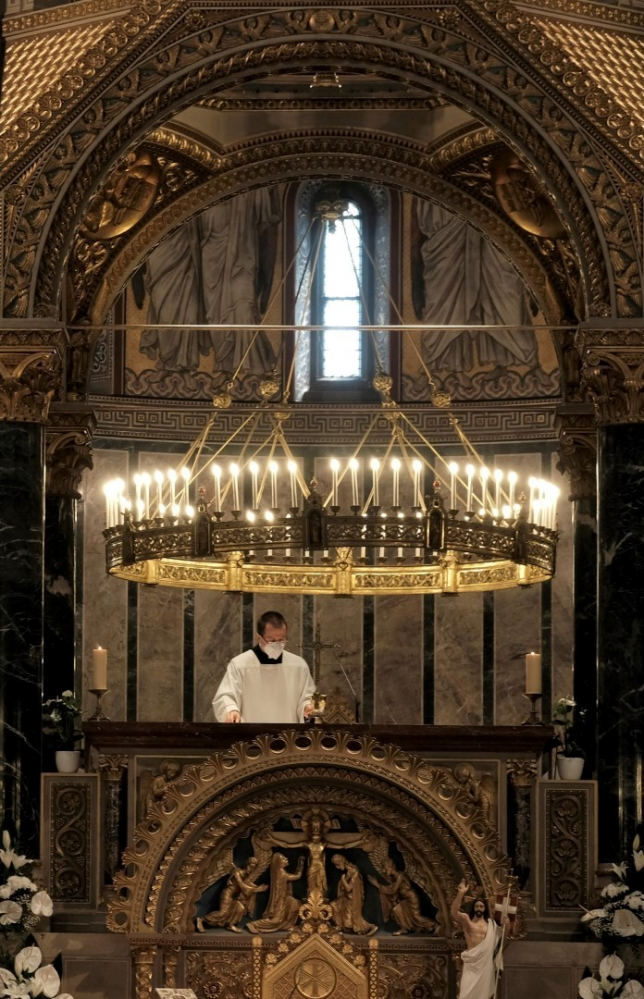 Húsvétvasárnap, Urunk feltámadásának főünnepén Felföldi László pécsi megyéspüspök celebrált szentmisét a Pécsi Székesegyházban.
