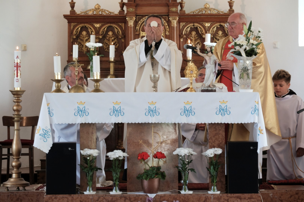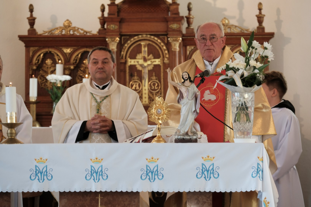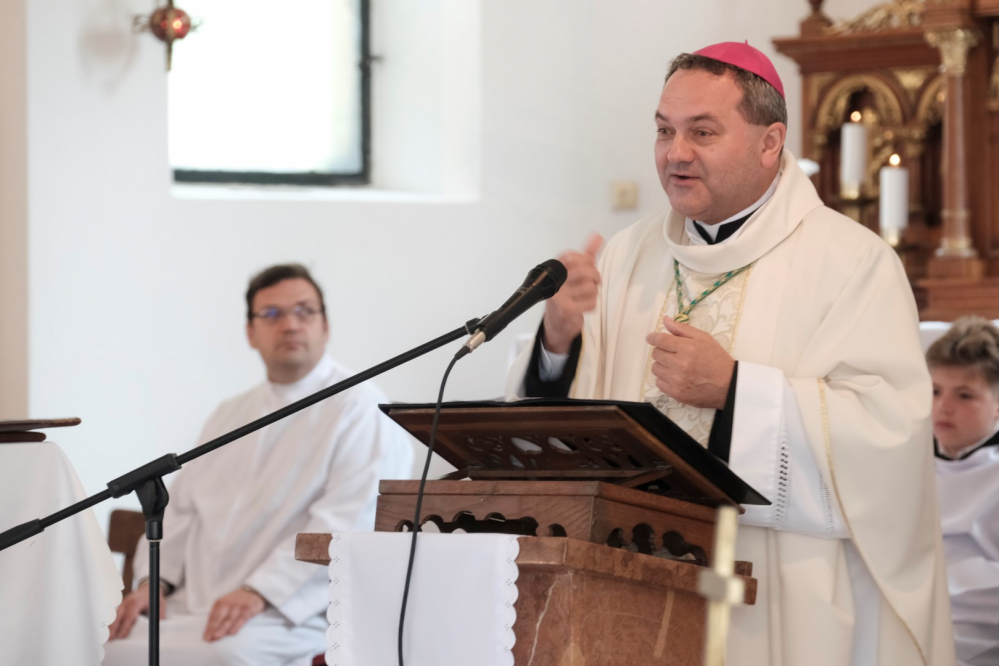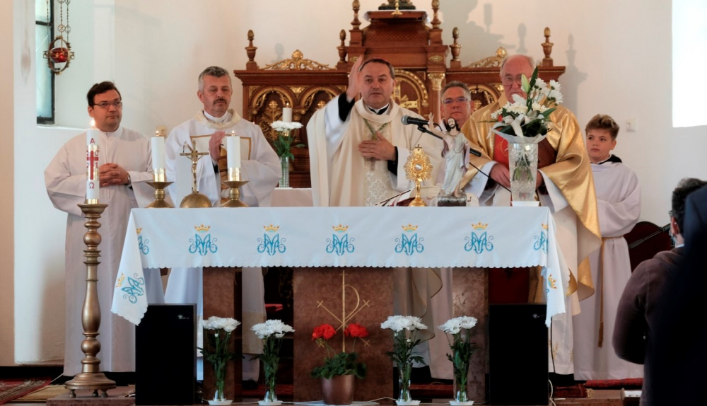 Szűz Mária Szíve tiszteletére felszentelt épület jelentőségével, valamint annak felállításán dolgozó pap személyének bátorságával kapcsolatban a főpásztor homíliájában hangsúlyozta, ez az emlék a mennybemenetel szép ünnepén egy mély jelenlétre hív. „A történelem viszonytagságai sem tartották vissza Kovács József atyát a jó cselekedetektől, melyek hitének erejét igazolják. Ezen a gazdag vasárnapon, amikor Urunk mennybemenetelét ünnepeljük, tegyük fel a kérdés: hogyan építkezünk mi? Hogyan építjük életünket?” A megyéspüspök kitért arra is, mit jelent Jézus ezen cselekedete, mely nem pusztán egy megérkezésre utal, hanem a világ végezetéig tartó jelenlétre. Mert bár az Úr Krisztus felszállott a mennybe, nem hagyta magára tanítványait (vö. Mk 16,15-20), így a jelen kor és a jövő embereit sem. Sőt, mindezzel a szeretet és a hit továbbadását bízta követőire, mellyel kapcsolatban püspök atya kiemelte: a hit átadományozását nem lehet tanítani. „A szeretetet és a hitet akkor tudjuk átadni, ha életünkkel, cselekedeteinkkel közvetítjük azok fontosságát. Egy apa úgy tudja igazán szépen átadni Istenbe vetett bizalmát gyermeke számára, ha meggyőződéssel gyakorolja hitét, így a fiatal látni fogja, hogy fontos a vallásos lelkület megélése. Ez a jelenlét!”