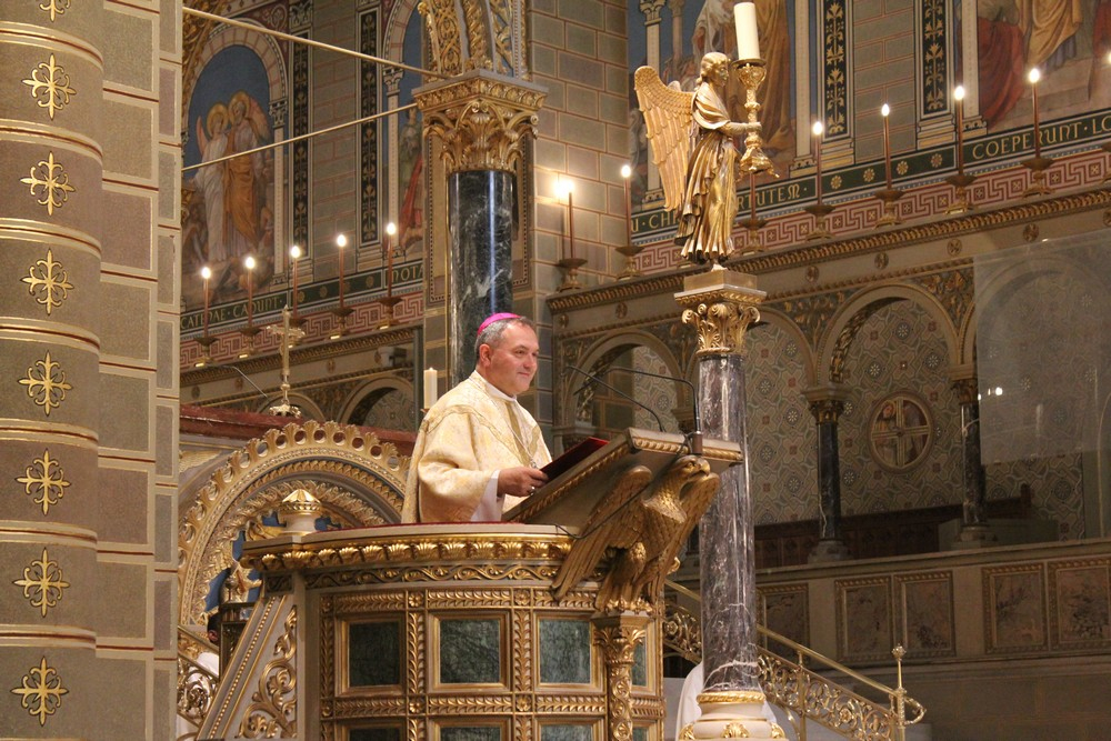 „A diploma megszerzésekor magától értetődő a hálaadás szándéka, ilyenkor végig gondoljuk, kinek is köszönhetjük azt, hogy elértünk eddig a pontig” – emlékeztett a püspök atya a talentumokról szóló példabeszéd kapcsán. „Mi mindent kaptunk, kiktől kaptuk, mit tettünk hozzá mi magunk. Aki nem tud köszönetet mondani, kinyilvánítani háláját a kapott dolgokért, az még nem értette meg az életet mélységében. Ugyanakkor a diploma megszerzése az igazi nagy vizsgának, az élet vizsgájának csak a kezdete – hasonlóan, mint a pap- vagy püspökszentelés –, az még csak lehetőség. Attól fogva fognak minket vizsgáztatni az emberek nap mint nap: megfelelünk-e a követelményeknek, várakozásoknak, a kitűzött céljainknak? Összhangba tudunk-e kerülni a vállalt feladattal újra és újra?