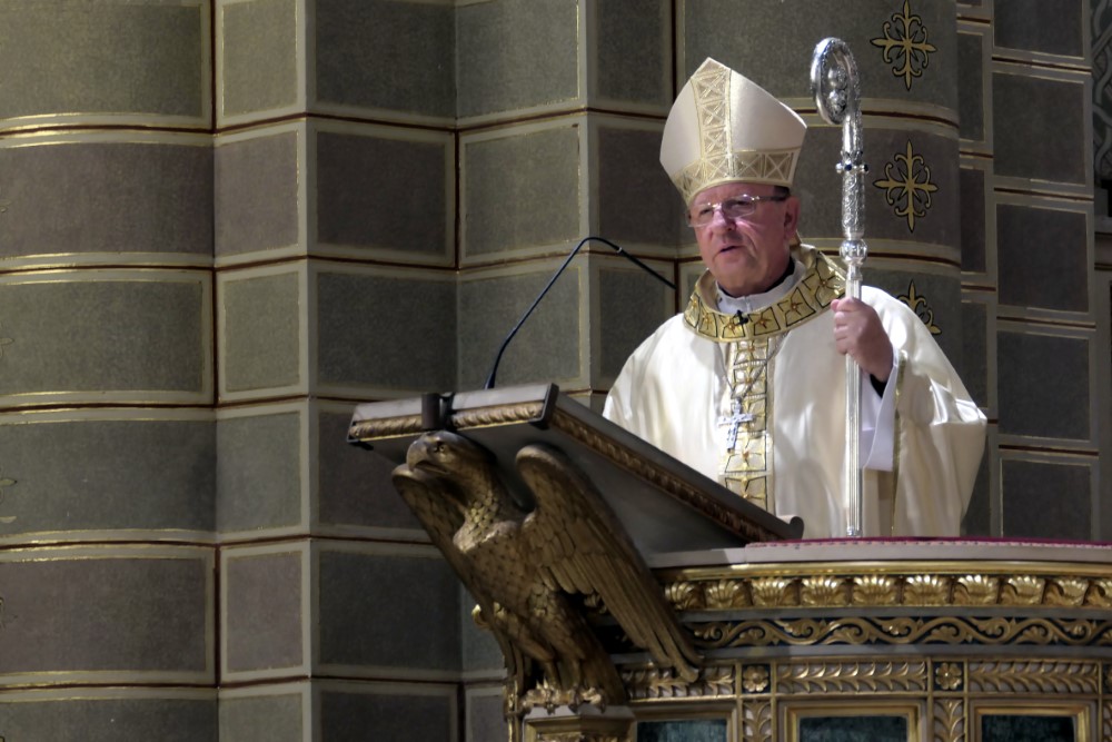 „Egy egyházmegye lelkisége a védőszentjéhez köthető leginkább. Persze mindenki lelkisége Krisztushoz köthető. Sokfélék vagyunk mi emberek, közösségek. Időben is, térben is vannak távolságok. Van aki 1012 éves, és van aki 28.” – mondta, utalva a Debrecen-Nyíregyházi Egyházmegye zsenge korára. „Tulajdonképpen mindannyian arra kaptunk meghívást, hogy a szeretet forrásáról, Jézus Krisztusról tegyünk tanúságot, aki minden szentmisében megjelenik közöttünk és kínálja magát nekünk, hogy átalakítson, formáljon. Ne csak panaszkodjunk! Ezer évvel ezelőtt sem volt könnyű. A történelem során is voltak nehéz időszakok, például amikor nem is lakhatott Pécsett a pécsi püspök. De kitartottak, mert Krisztusba kapaszkodtak, mert a tiszta forrásból merítettek. Szidjuk a mai világot, de minden nap a mai világ van. Mi ezt kaptuk meg lehetőségként, hogy ebből hozzuk ki a legjobbat. Ez feladat is, hogy álljuk meg a helyünket ott, ahova Isten állított.” Ehhez a szolgálathoz áldást és erőt kívánt Palánki Ferenc főpásztor.