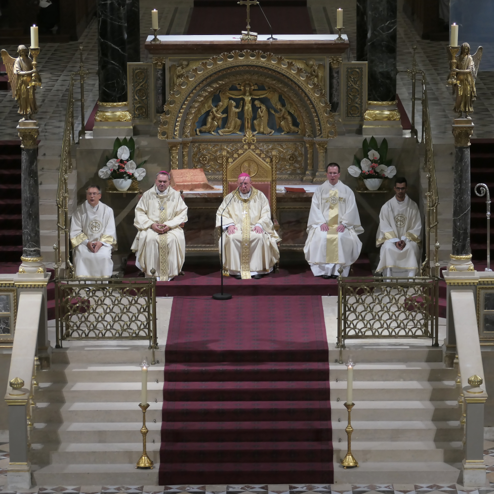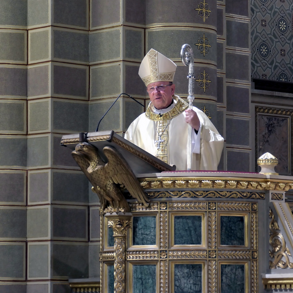 Az egyházmegye védőszentje, Szent Péter apostol olyan ember volt, aki odafigyelt Jézus szavára. Ha végignézzük az életét, látjuk, hogy milyen nagy fejlődésen ment keresztül. Amikor belépett Jézus az életébe, akkor egy adott ponton azt mondta Péternek, hogy evezz a mélyre. A csodálatos kenyér és halszaporítás, Péter meghívása bennünket is arrafelé kell irányítson, hogy vegyük észre Jézust, aki a mi életünk bárkájába is be akar lépni. „Nekünk is mondja, evezzünk már kicsit a mélyre. Amikor a csodálatos halfogás kapcsán Péter rádöbben arra, hogy az Isten látogatja meg őt, akkor kimondja azt a mondatot, amivel beismeri méltatlanságát: Uram, menj el tőlem, mert bűnös ember vagyok. Ez a mondat pont az ellenkezőjét jelenti. Nehogy elmenj, maradj itt velem! Hadd menjek veled! Annyira jó, hogy beléptél az életembe!”