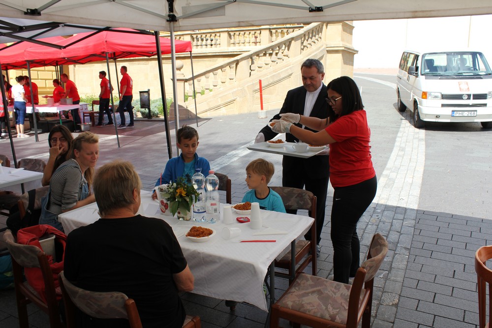 100 rászorulót hívott meg szeretetvendégségre a Pécsi Egyházmegyei Katolikus Karitász és a Szent Egyed közösség szeptember 4-én, az Nemzetközi Eucharisztikus Kongresszus megnyitását megelőző napon.