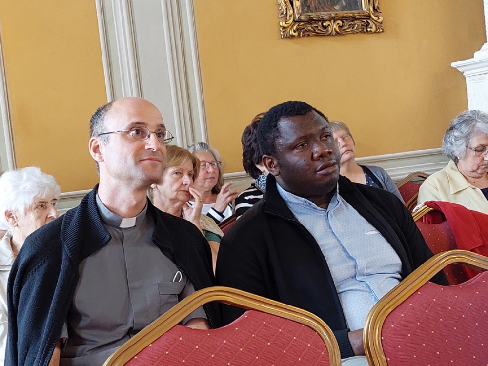 Az előadások közötti percekben az Eucharisztikus kongresszusra hangolódva szentségi dalokat énekeltek az önkéntesek. A tartalmas délelőtti program után a ragyogó időben a kertben elfogyasztott ebéd alkalmával lehetőség nyílt ismerkedésre több, más egyházmegyékből (Budapest, Debrecen, Eger) érkezett önkéntessel is.