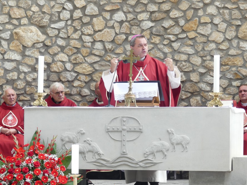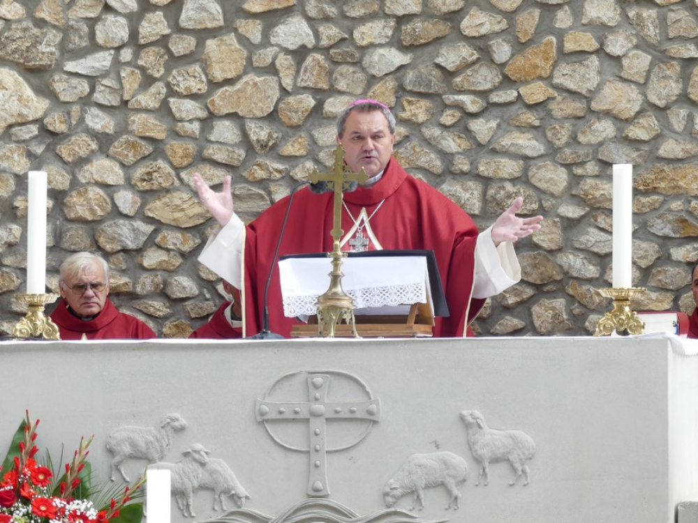 Püspök atya arra hívta fel a hívek figyelmét a szentmise elején, hogy Isten szeretne valamit átadni. Kérte, hogy azzal együtt, hogy mindenki hozta magával a saját keresztjét, próbáljunk félretenni mindent, ami zavarja és akadályozza az Istennel való találkozást. Mert ezt a találkozást Isten akarja, hisz Ő hívott ide. Püspök atya azt kérte, hogy ha már az útra eljöttünk, akkor a találkozásban őszinte szabad és nyitott jelenléttel legyünk. Hallgassunk Jézusra, akinek van gondolata, üzenete nekünk, mindannyiunknak — külön-külön, és családjaink számára is. Ez az a titok, ami megerősít. Jézus azért akar megállásra késztetni, leültetni minket, hogy az apostolokéhoz hasonlóan javítsa a szívünket, erősítsen a küldetésünkben, szeretetünkben és jóságunkban. Hogy kicsit jobbként tudjunk hazamenni: jobb szülőként, jobb apaként, jobb anyaként, jobb nagyszülőként, jobb papként. Mert ha holnaptól nem lesz bennem egy érzés, hogy még többet tudok az Istennel kihozni az életemből, akkor nem voltam itt. (…)