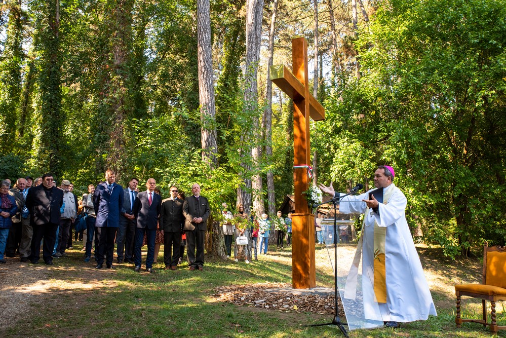 Nagy Bálint osztályvezető beszédében az erdők lelki megnyugvást nyújtó hatásairól elmélkedett. Elmondta, hogy a környezet szépsége által jelen emlékhely is a lelki egyensúly megteremtését segíti, hozzájárul a gyökereinkkel való kapcsolódás erősítéséhez. Megosztotta tapasztalatait arról, hogy a világjárvány idején még többen keresték az erdőkben a megnyugvást. Kifejezte bizalmát, hogy a kereszt tövébe érkezők a rohanó világ problémáiról megfeledkezve elgondolkodnak a Mindenható erejéről, ami ezt a környezetet is létrehozta.