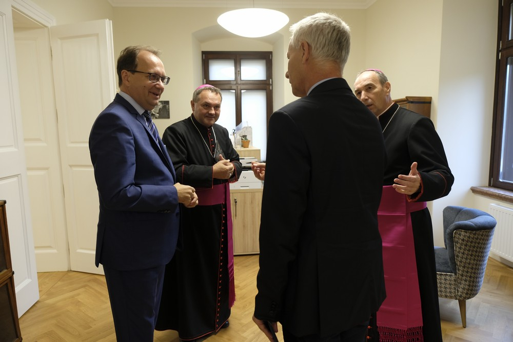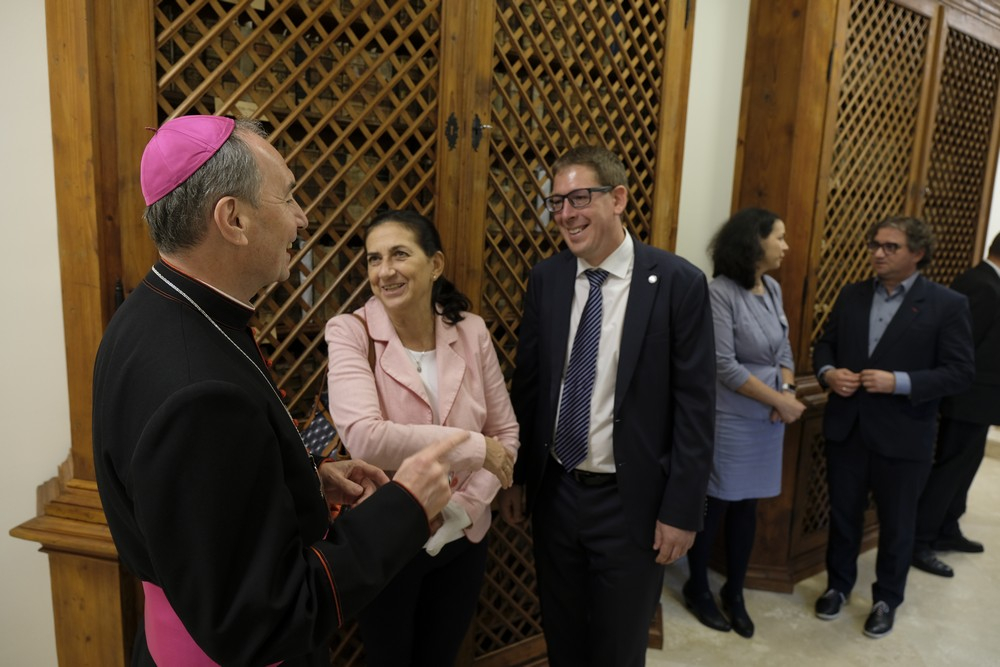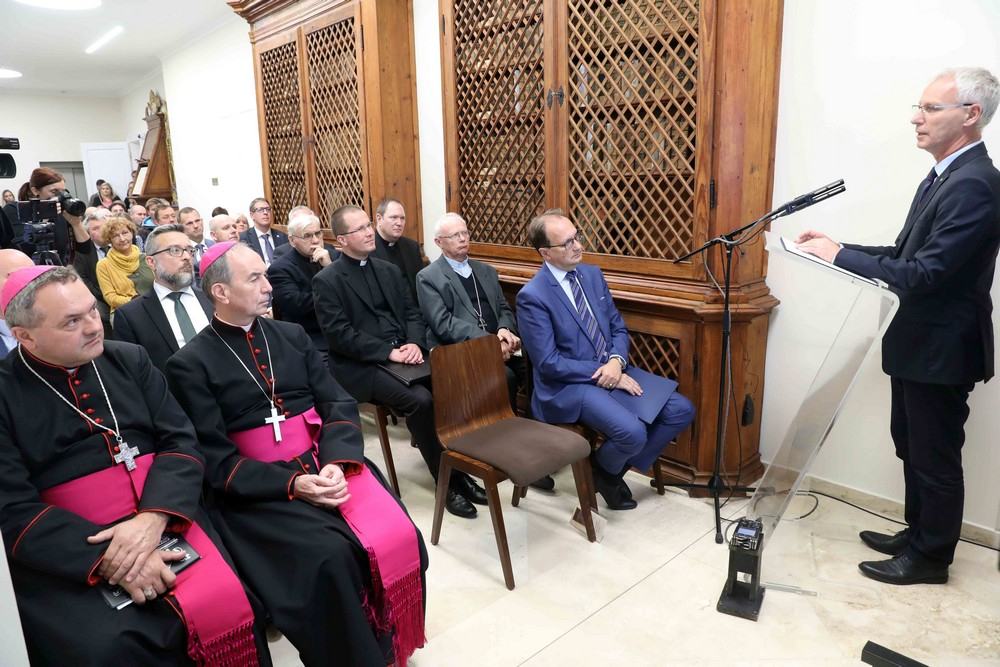 Magyarország Kormánya képviseletében két beszéd is elhangzott: Soltész Miklós egyházi és nemzetiségi kapcsolatokért felelős államtitkár II. János Pál pápa alábbi szavait választotta gondolatmenete mottójának: „A kultúra és a hit közötti szintézis nemcsak a kultúra igénye, hanem a hité is. Az a hit, amely nem válik kultúrává, nem teljesen befogadott, nem teljesen átgondolt, nem elég hűségesen életre váltott hit”. Külön kitérve hangsúlyozta a magyar kormány egyházi értékteremtő és értékmentő támogatásainak fontosságát. Őt Dr. Hoppál Péter, a kulturális alapellátás kiterjesztésének összehangolásával kapcsolatos feladatok ellátásáért felelős miniszteri biztos, országgyűlési képviselő követte, aki beszédében Pécs ezredéves kulturális identitásának hangsúlyossága mellett rámutatott a Pécsi Püspökség könyvtárügyben tett korábbi nagylelkű felajánlására (Klimo Könyvtár). Továbbá kiemelte a 21. század emberének az európai keresztény kultúrában gyökerező tudásának fontosságát és az egyházak kultúrateremtő attitűdjét is.