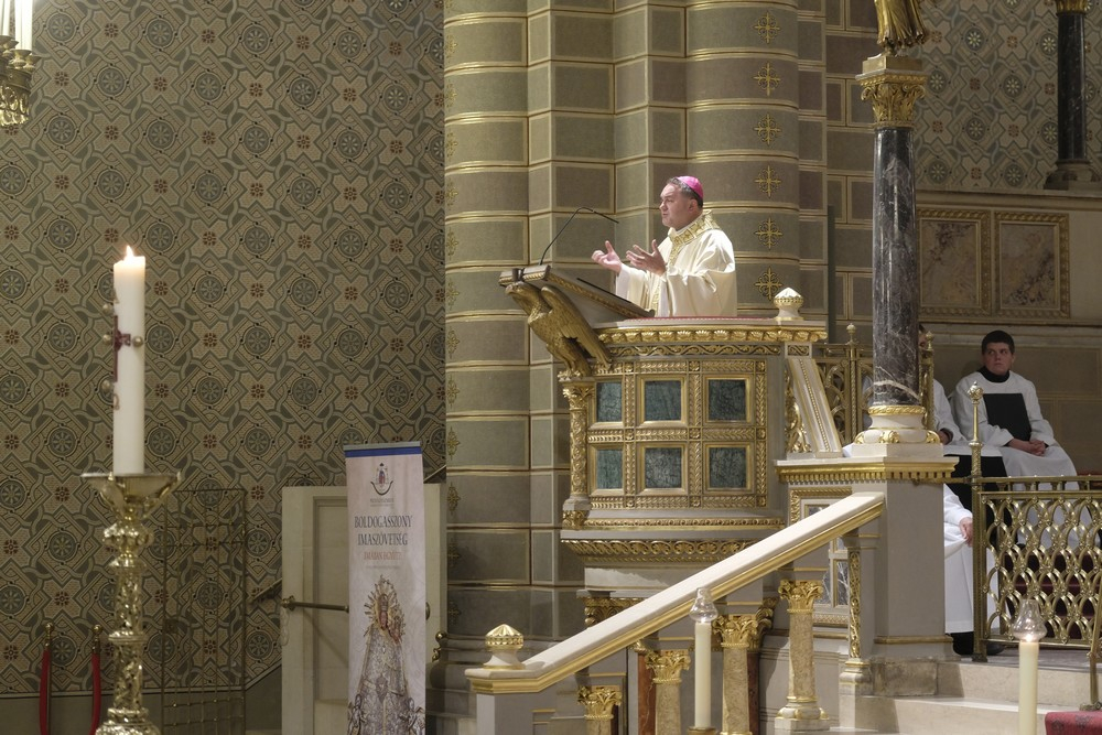 A szentség evangéliumi megközelítésének a legegyszerűbb és leggazdagabb definíciója a nyolc boldogságról szóló tanítás. Boldogok mindazok, akik rácsodálkoznak az életre. A főpásztor egy dolgot emelt ki: „Boldogok a békességszerzők, mert őket Isten fiainak fogják hívni” (Mt 5,9) és felhívta a figyelmet, hogy ez most, mindenszentek ünnepén különösen megjelenik: „Nem tudom megfigyeltük-e, hogy ilyenkor kicsit békésebbek vagyunk. Amikor oda állunk a sírhoz és az elhunytainkra gondolunk, többet nézünk 1-1 gyertya fényébe és ilyenkor megbékél az ember szíve. Jézus azt akarja, hogy az Ő békéje legyen bennünk, mert ez a szeretetünk feltétele. Ha nincs béke, nincs szeretet. Ez egy egyensúly, ami nem azt jelenti, hogy minden tökéletes, hanem hogy ott van a szeretet az önmagammal és embertársammal való kapcsolatban a szívemben.