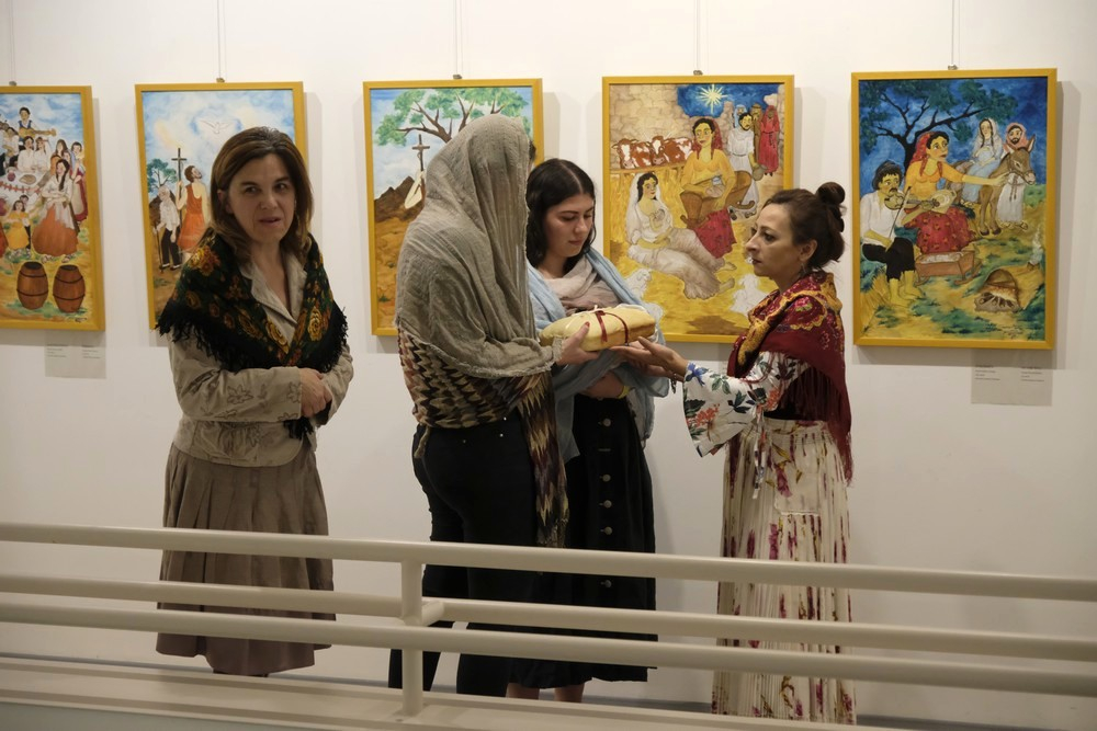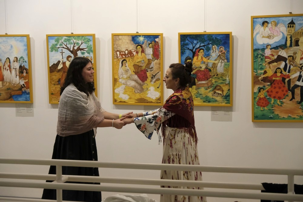 A kiállítás középpontja Ráczné Kalányos Gyöngyi tizennégy olajfestménye, amelyek a Punya-kötet illusztrációiként szolgálnak. A komlói születésű, Pécsett élő, roma származású naiv grafikus- és festőművész a Magyar Ezüst Érdemkereszt polgári tagozatának kitüntetettje több évtizedes művészi pályát tudhat magáénak.
