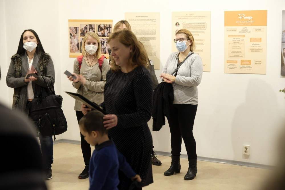 A továbbiakban Bodnár Boglárka múzológus beszámolt arról, hogy a Versegi Beáta Mária szívében született kötet gondolata szépen lassan önálló életre kelt, s egy összművészeti projektté nőtte ki magát. A kiállítás fotósorozattal mutatja be a Punya-projekt egy másik kezdeményezését. Kiss Barbara gyógypedagógus és magyartanár a Máltai Szeretetszolgálattal közösen indította el az ún. Mesélő anyukák csoportját Kadarkúton és Csökölyben, mely egy olyan olvasókör, amiben a Punya-kötet segítségével hívták fel a településen élő édesanyák figyelmét a mesemondás fontosságára.