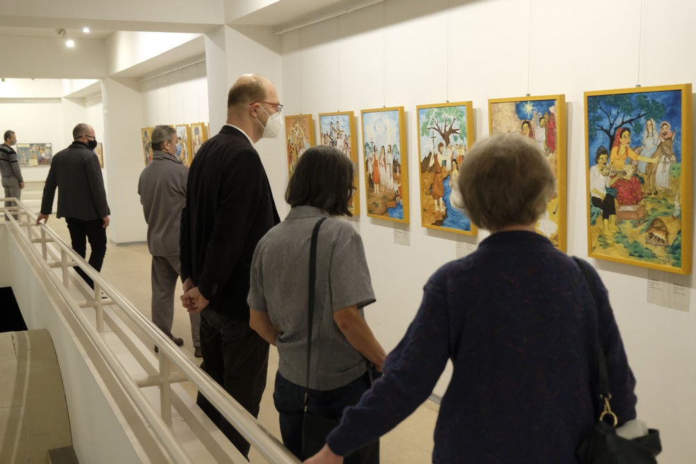 Kvanduk Frigyes ünnepi beszédében megfogalmazta, hogy a kiállítás elindítja a személyt egy úton, amelyen a színek, a történések és a szemek világa vezet. Egy mélyről fakadó útkeresés ez, mely megszólítja nézőjét, s ez a személyesség elsődlegessé válik. Kirajzolódik benne az Úr végtelen akarata, hiszen a személyben mindig valahol jelen van az Isten, az önmagát közlő és mindenkit befogadó szeretet. A helynök úr felhívta a figyelmet, hogy olvassunk a képekből, melyek életünk útkereséseiben is segítségünkre válhatnak, hisz itt megjelenik annak a szíve, aki mindenkor odaadja önmagát.
