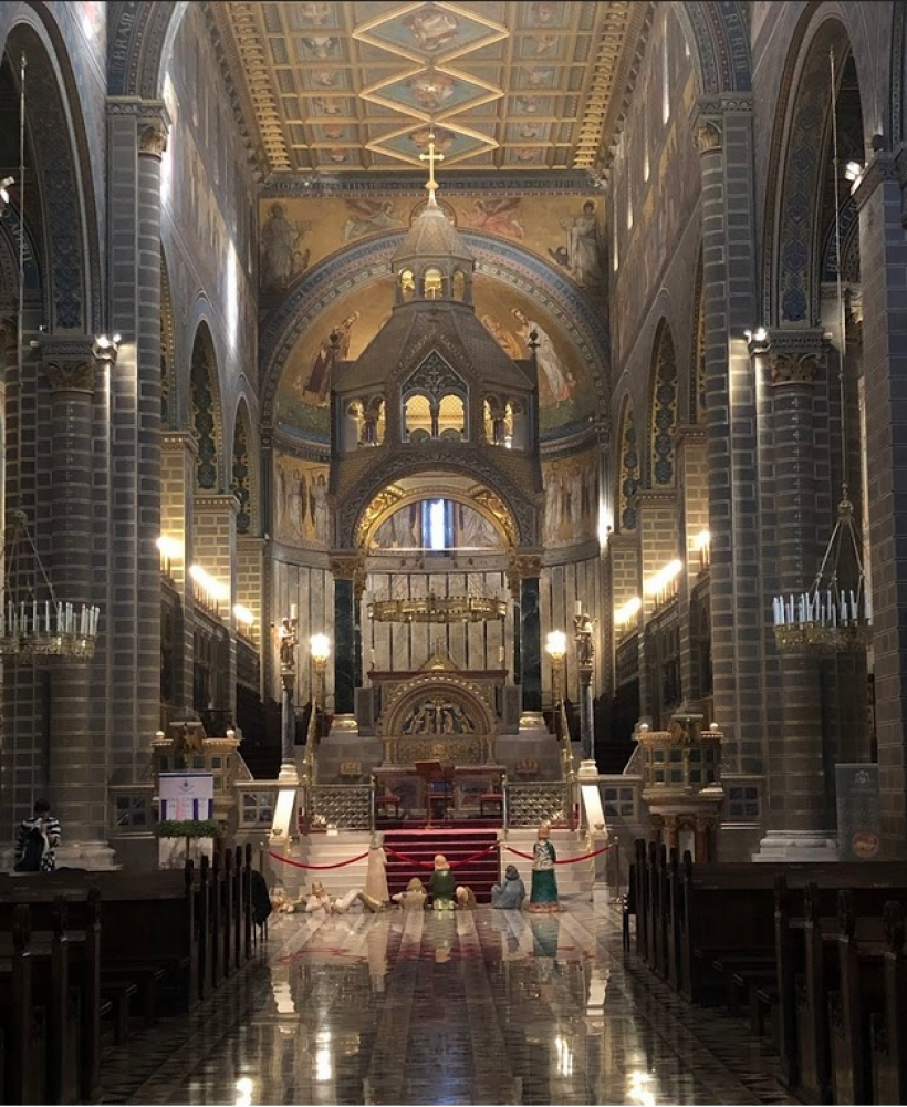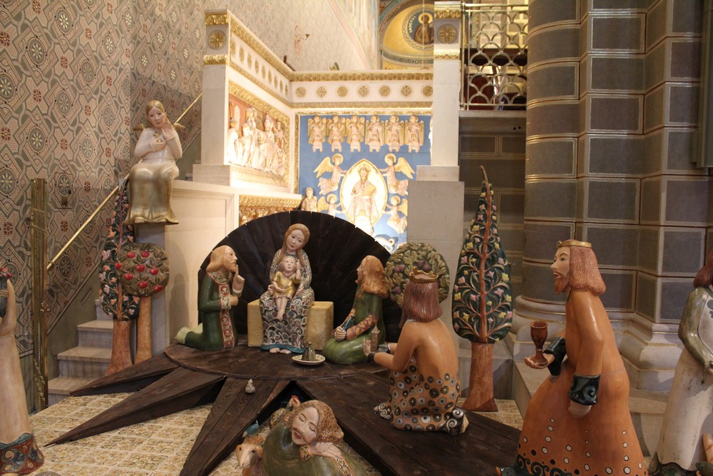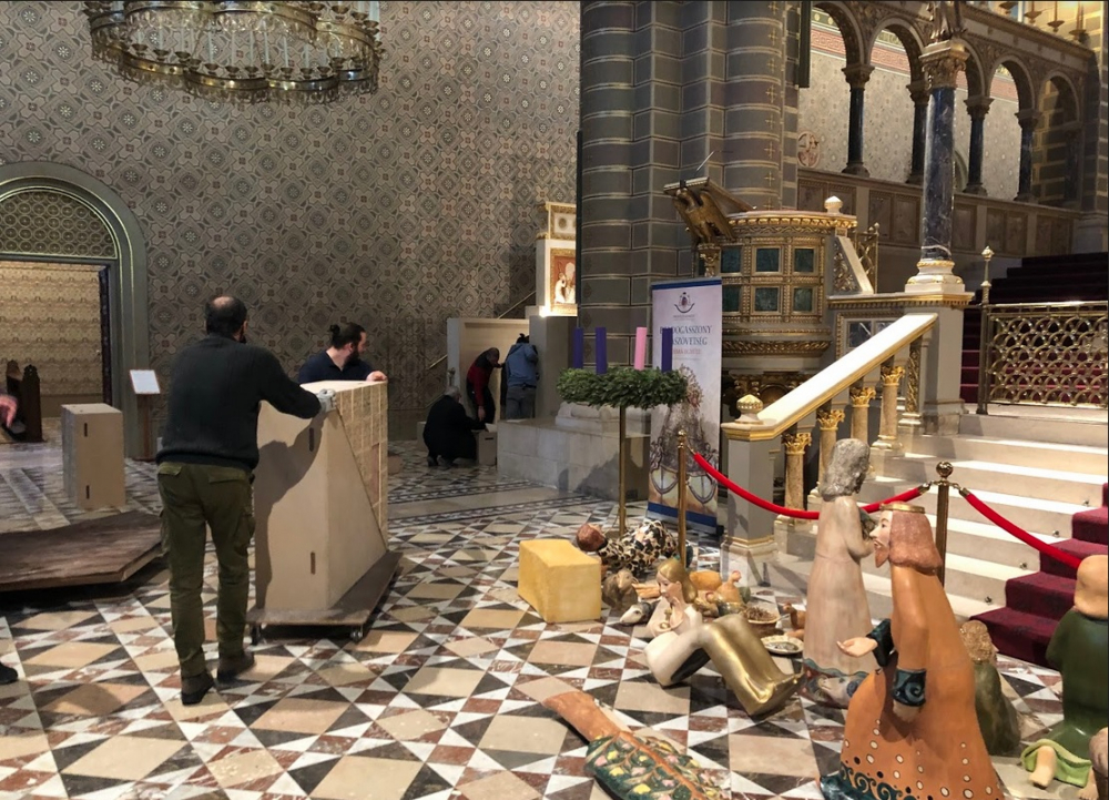Jézus Krisztus születésének méltó megünneplésére a székesegyház belső terében is megkezdődtek az előkészítő munkálatok, melybe szintén bekapcsolódtak a diákok. Az egyházmegyéhez 2016-ban érkezett nagyméretű betlehemi kompozíció felállításán a hivatal férfi munkatársai dolgoztak. A szoborcsoport Ágoston-Papp Mónika keramikus művész alkotása, aki korábban így nyilatkozott munkájáról: „A betlehem számomra a legnagyobb ajándék, a feltétel nélküli szeretet szimbóluma. Az a gondolat és vágy vezérelt, hogy az általunk alkotott szimbolikus betlehemi jelenet, ezt a minden esendőségünkön, töredékességünkön túlmutató, felemelő szeretetet idézze meg és ennek örömével töltse el a lelkünket."