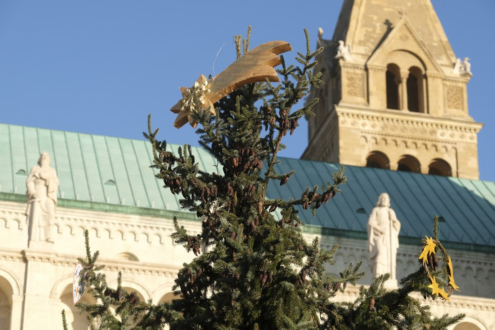 Az adventi készület végéhez közeledve immár teljes pompájában áll egyházmegyénk karácsonyfája a Dóm téren, valamint felállították a székesegyház betlehemét is. A munkálatokat a Szent Mór Iskolaközpont diákjai és a Püspöki Hivatal munkatársai közösen végezték.