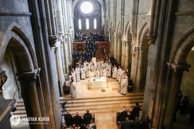 A délelőtt 10 órakor kezdődő ünnepi szentmisére megtelt a Pannonhalmi Bencés Főapátság szívében álló Szent Márton-bazilika. Jelen voltak a Pannonhalmi Bencés Gimnázium tanárai és diákjai, a főapátság munkatársai, a város polgármestere, valamint a monostori kiállítótérben nyíló tárlat kurátora és alkotói.