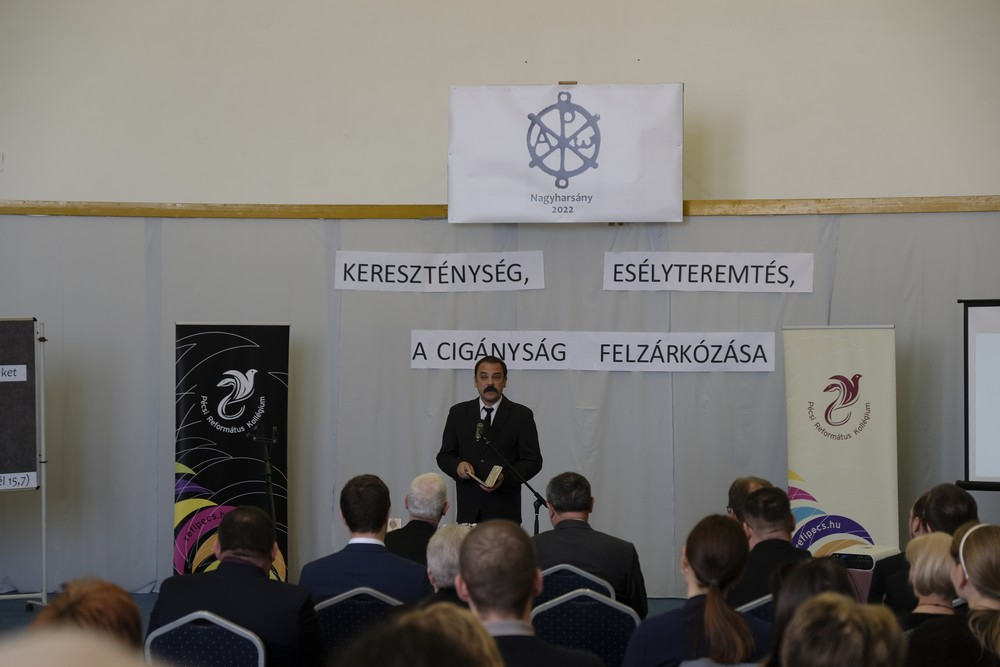 Balog Zoltán, a Dunamelléki Református Egyházkerület püspöke, a Magyar Református Egyház lelkészi elnöke a szolgálat fogalmának kiindulópontját tisztázta. Aki komolyan veszi az igehirdetést és a szakmai munkáját, tudja, hogy egyik a másik nélkül nem áll meg, mindkettőre párhuzamosan szükség van. A segítségnyújtáshoz természetesen ott kell lennie a jelentős anyagi eszközöknek, a szakmai felkészültségnek, de mindez a lelki, mentális megalapozás nélkül, amit sokkal nehezebb láthatóvá tenni, nem hoz igazi eredményt. A segítő munka kiindulópontja a szeretet. A kormányzat tíz évvel ezelőtt új alapokra helyezte a roma felzárkózás kérdéskörét - folytatta Balog Zoltán - és mára olyan eredményekről is beszámolhatunk, amik számszerűen is mérhetőek, például a foglalkoztatásban. Nem mindig könnyű megértetni a döntéshozókkal, hogy közös érdekünk a leszakadó rétegeknek segítséget nyújtani. Motivációként az érdek – te is rajta vesztesz, ha nem segítesz – kevés lesz. A szeretet az egyetlen közös, hosszútávú alap, mert mindannyian Isten teremtményei vagyunk. Ezt a munkát akkor is folytatni kell, ha olyan váratlan próbetételekkel szembesülünk is, mint a járvány vagy a háború. Nem véltelenül került a „felzárkózás” szó a „felzárkóztatás” helyett a konferencia címébe. Azt a szemléletváltást hivatott tükrözni, hogy mindenkinek felelőssége van saját sorsának alakításában. Hasonlóképpen módosult az esélyek megközelítésének fogalma is. Nem esélyegyenlőségről beszélünk, mert az nem létezik, hanem esélyteremtésről. Nem lehet ugyanazokat az esélyeket biztosítani a nagyon eltérő körülmények között élők embertársainknak, de megtehetjük, hogy a nehéz sorsúaknak olyan lehetőségeket hozunk létre, amik növelik esélyeiket, hogy felemelkedjenek, jobb helyzetbe kerüljenek. Pontszerű akciókban, egyes események szervezésében jók vagyunk, de a rendszer, ami összefogja az erőfeszítéseinket, még nincs kész. Balog Zoltán felhívta a figyelmet arra is, hogy a roma szakkollégiumok rendszerének kialakítása az első, hivatalos, felhatalmazott együttműködés Magyarországon a felekezetek között.