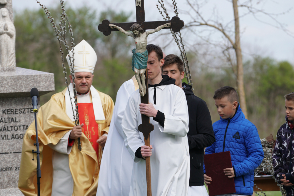 A virágvasárnapi szertartás a temlom és a kőkereszt főpásztori áldásával, majd barkaszenteléssel kezdődött a Borromei Szent Károly-templom kertjében. Ezt követően - Jézus jeruzsálemi bevonulására emlékezve - a hívek barkaágakkal a kezükben ünnepélyesen vonultak a szentmisére, ahol Jézus szenvedésének történetét, a passiót olvasták fel.