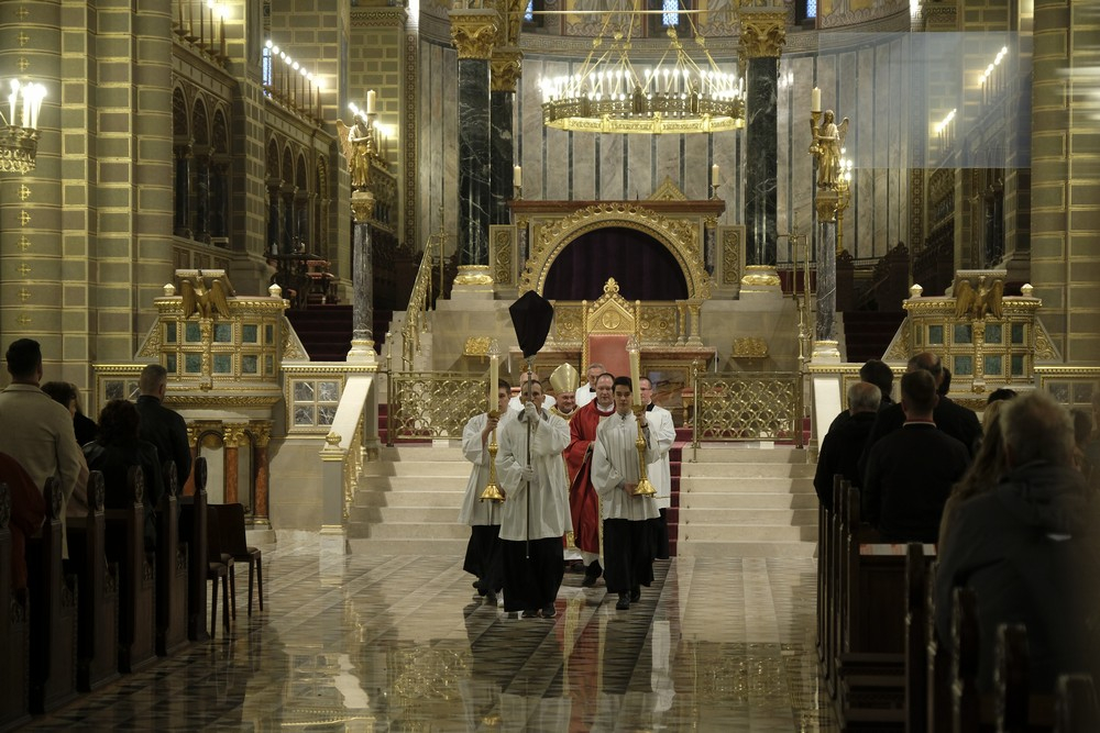 A barkaszentelés szertartásával, majd ünnepélyes bevonulással kezdődött virágvasárnapi ünnepi szentmisében Jézus Jeruzsálembe történt bevonulására emlékeztünk 2022. április 10-én, este a pécsi székesegyházban. A liturgiát vezette Felföldi László megyéspüspök, koncelebrált Szép Attila hivatalvezető püspöki helynök, a székesegyház plébánosa, valamint Máger Róbert, a püspöki iroda igazgatója.