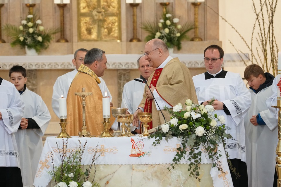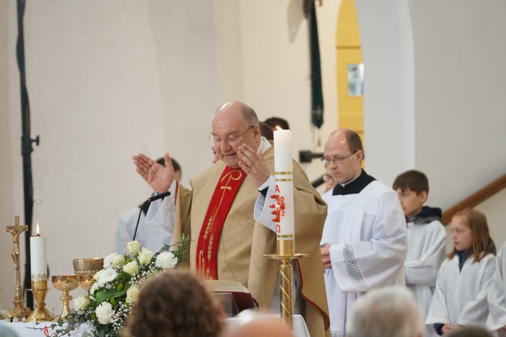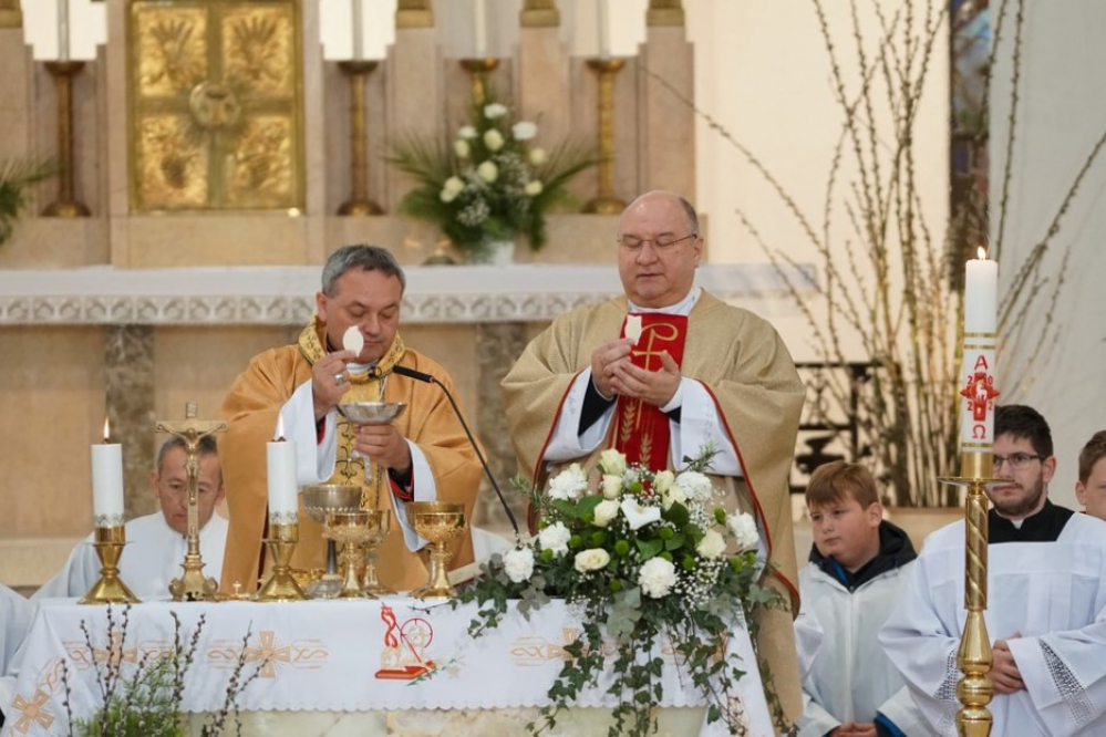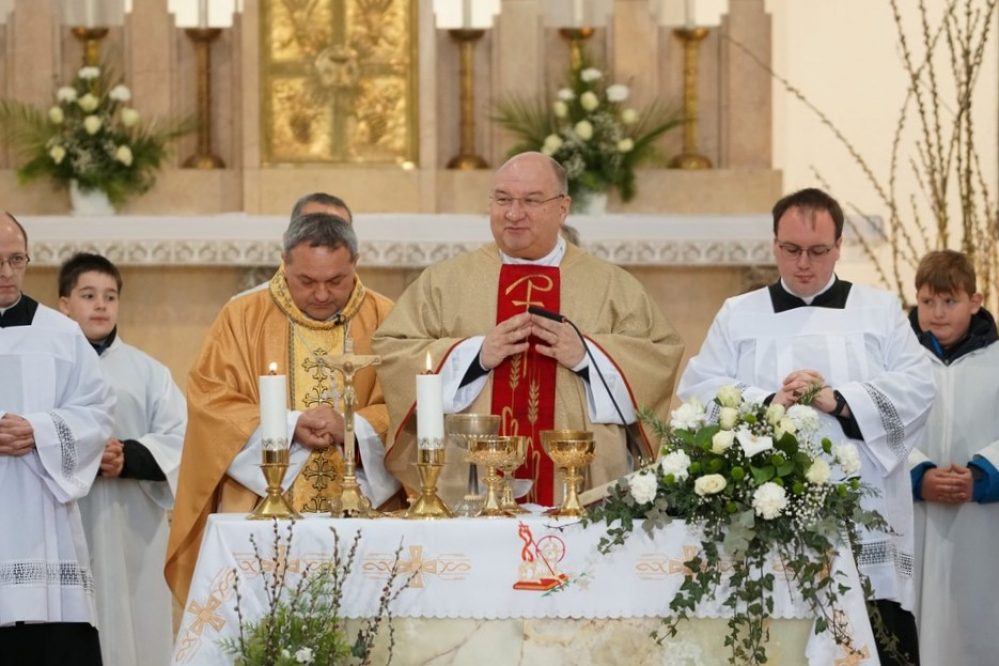 A feltámadás a húsvét ereje és öröme, az a szabadság és az az erő, amelyre mindnyájunk szíve vágyik: hogy szeressenek és életünk lényege a szeretet ajándékozása legyen – mondta Felföldi László megyéspüspök az április 17-én, húsvétvasárnap Mohácson bemutatott ünnepi szentmisén. A Fogadalmi templomban megtartott liturgián koncelebrált Bacsmai László plébános.