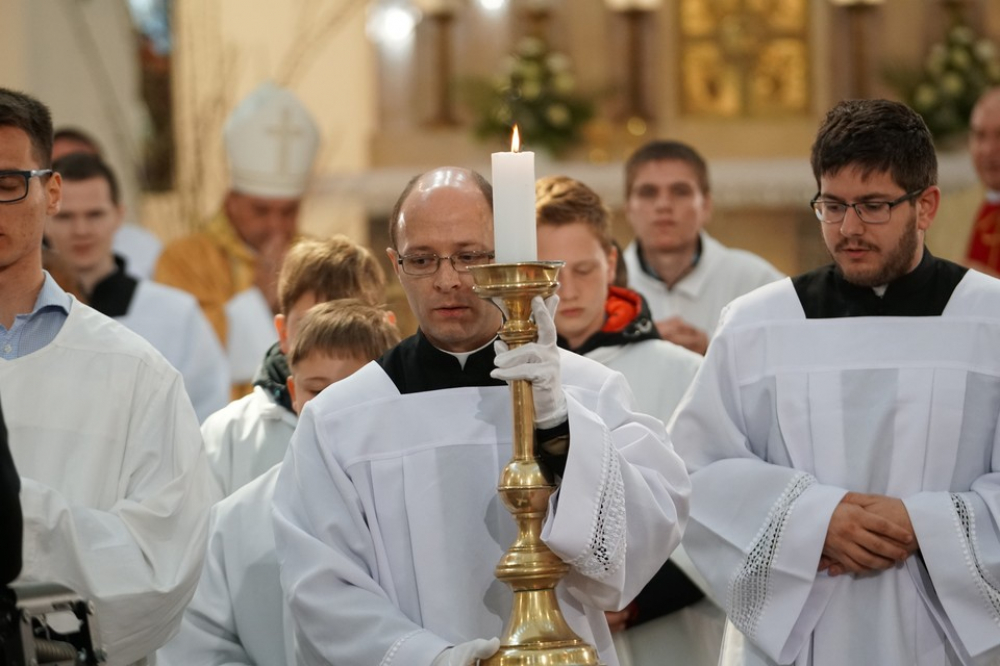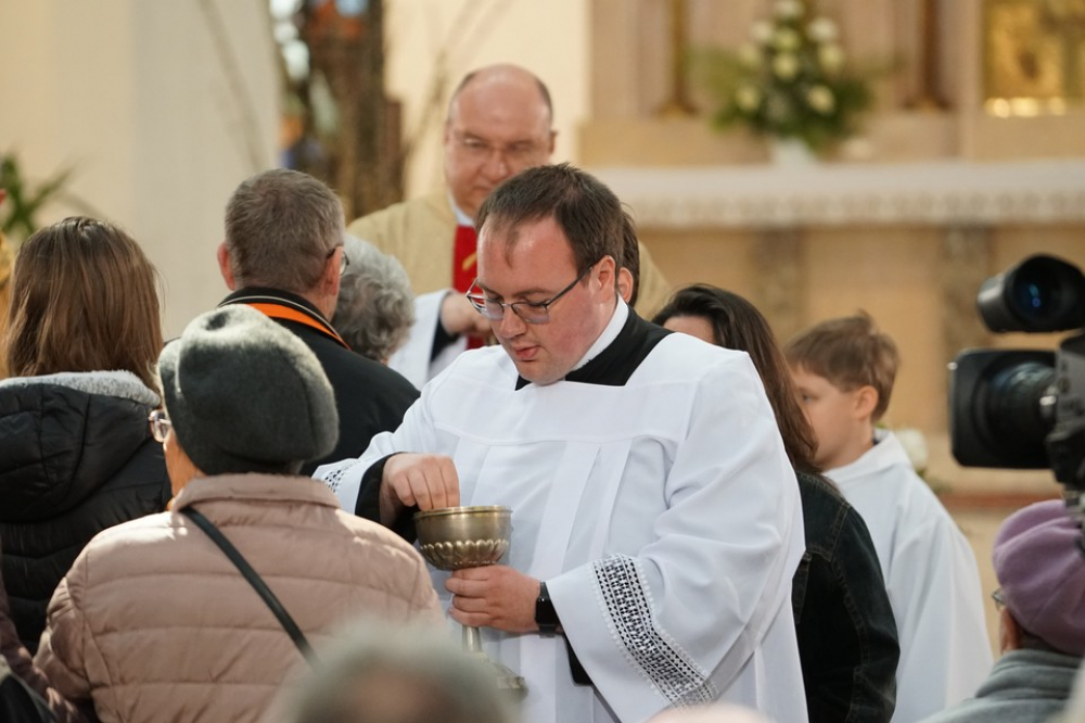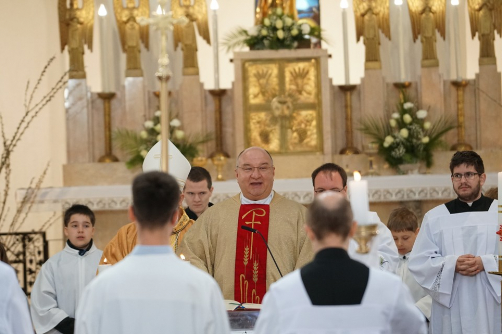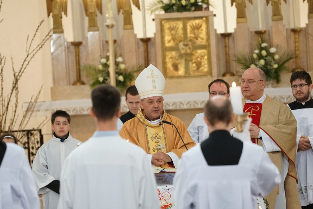 A szentmisét a Duna TV a liturgiát követően felvételről sugározta. Felföldi László megyéspüspök elmélkedését az alábbiakban közöljük.