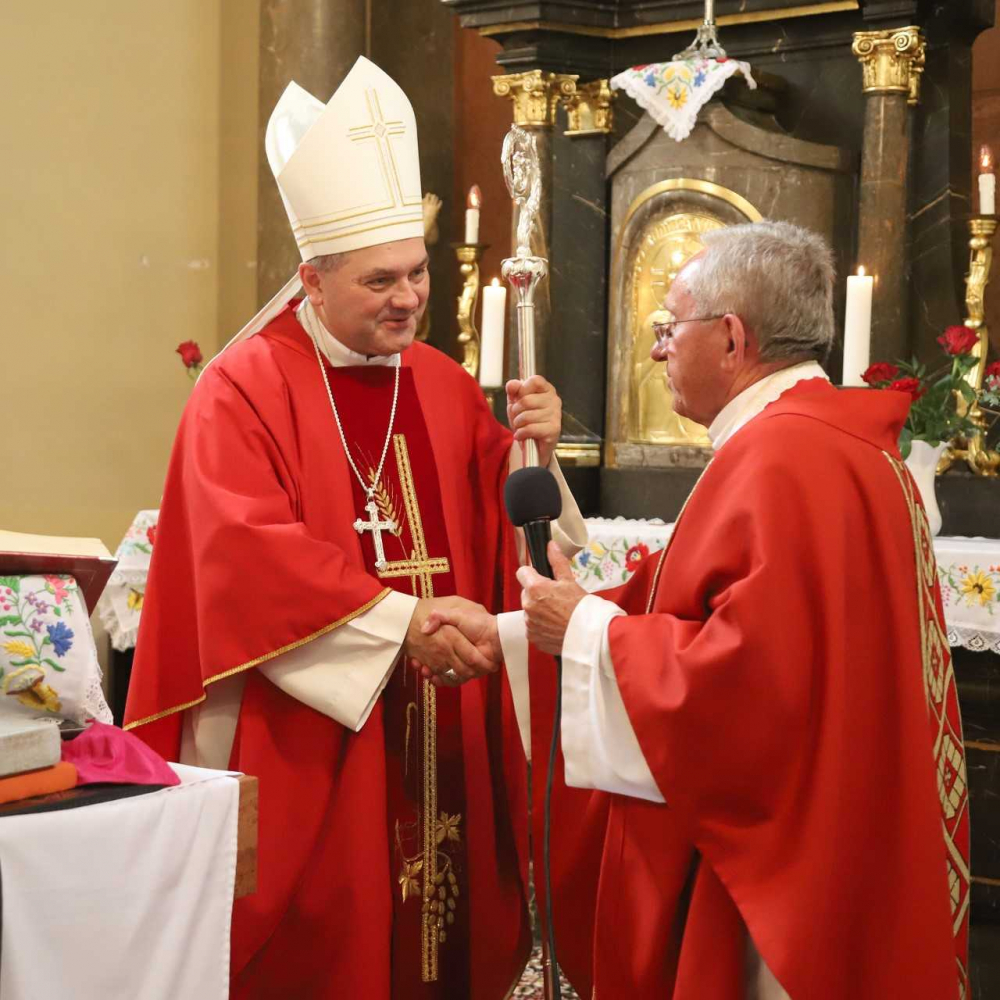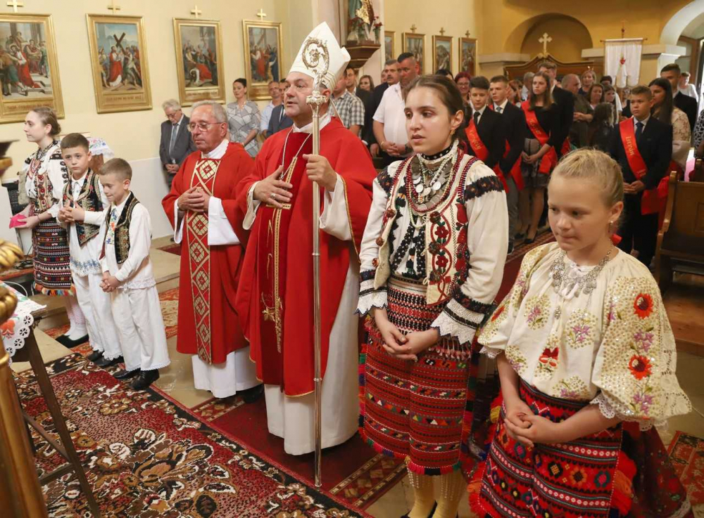„Isten hozta hív nyájához a főpásztort és atyát” - hangzott fel a püspököt köszöntő ének, amikor a főpásztor a templomba lépett és megkezdődött az ünnepi szentmise. Horvát népviseletbe öltözött ministránsok vezették a templomba a bérmálkozókat, a püspököt és a plébánost. A fiatalok minden nagyobb alkalmat megragadnak, hogy büszkén viseljék nagyszüleik, dédszüleik ünnepi ruháját. A mise állandó részeit horvát nyelven énekelték a hívek népi hangszerekkel kísérve, a szívből jövő éneklést és harmóniát a főpásztor megköszönte és megdicsérte.