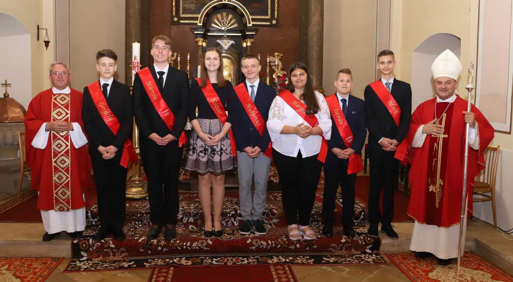 „A bérmálás szentség, amelyben a megkeresztelt megkapja a Szentlélek ajándékát, erőt és küldetést, hogy Krisztus élő tanúja legyen az Egyházban és a világban” - ezt vallja az a hét fiatal is, akiknek Szalánta község Németi településrészén található Szent László-templomában pünkösd vasárnapján kiszolgáltatta a bérmálás szentségét Felföldi László pécsi püspök.